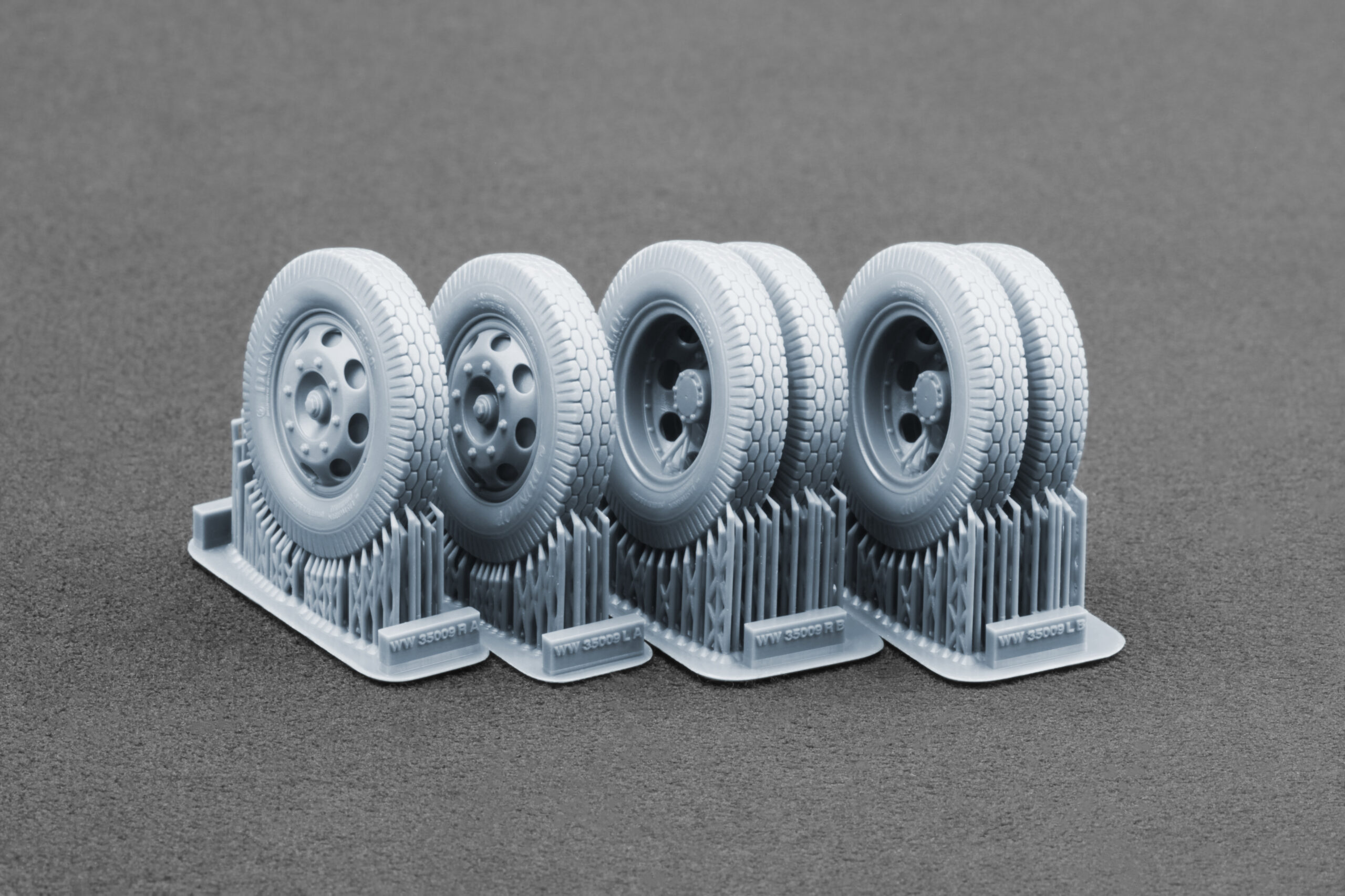 Щоб підвищити рівень реалізму вашої моделі Blitz у масштабі 1:35, ми створили серію високодеталізованих 3D-друкованих наборів коліс, що відтворюють характерні шини 7.50-20, які використовувалися на цих знакових легких військових вантажівках.
