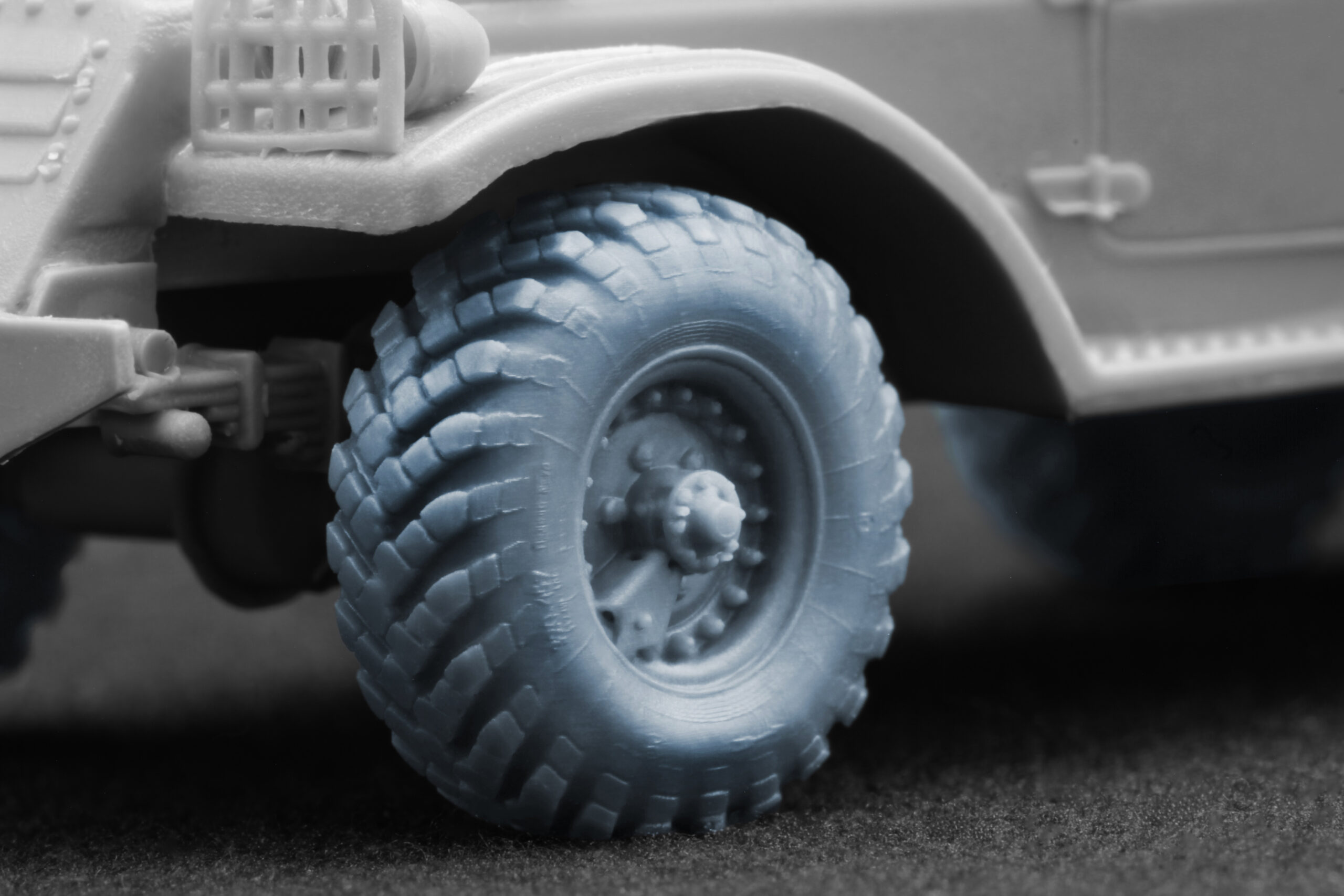 Щоб підвищити реалізм моделі бронетранспортера BTR-152, ми створили набір високодеталізованих 3D-друкованих коліс у двох варіантах — Ordinary (звичайні) та Sagged (з ефектом просідання). Шини та диски відтворені з максимальною точністю на основі фотографій і технічних матеріалів.