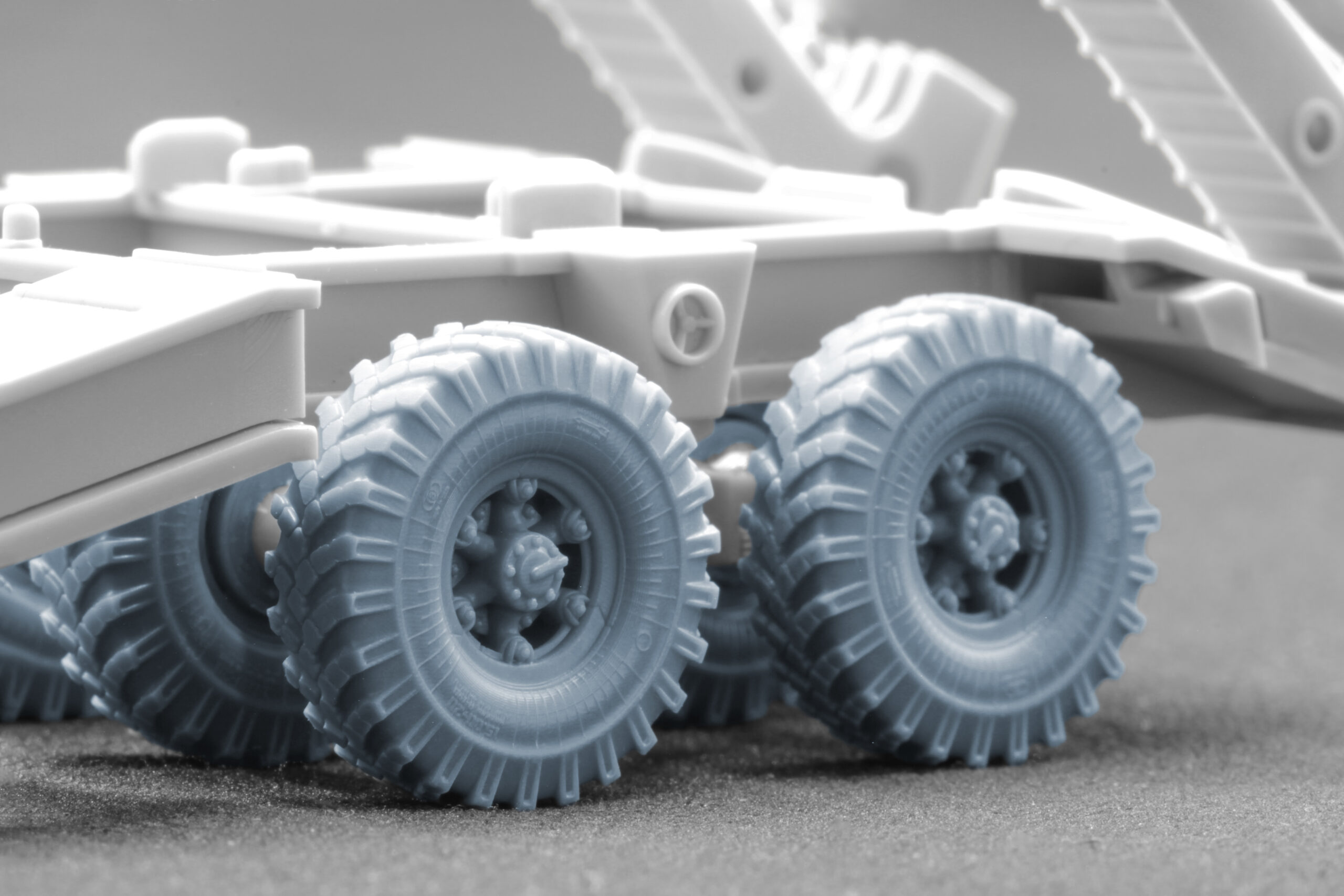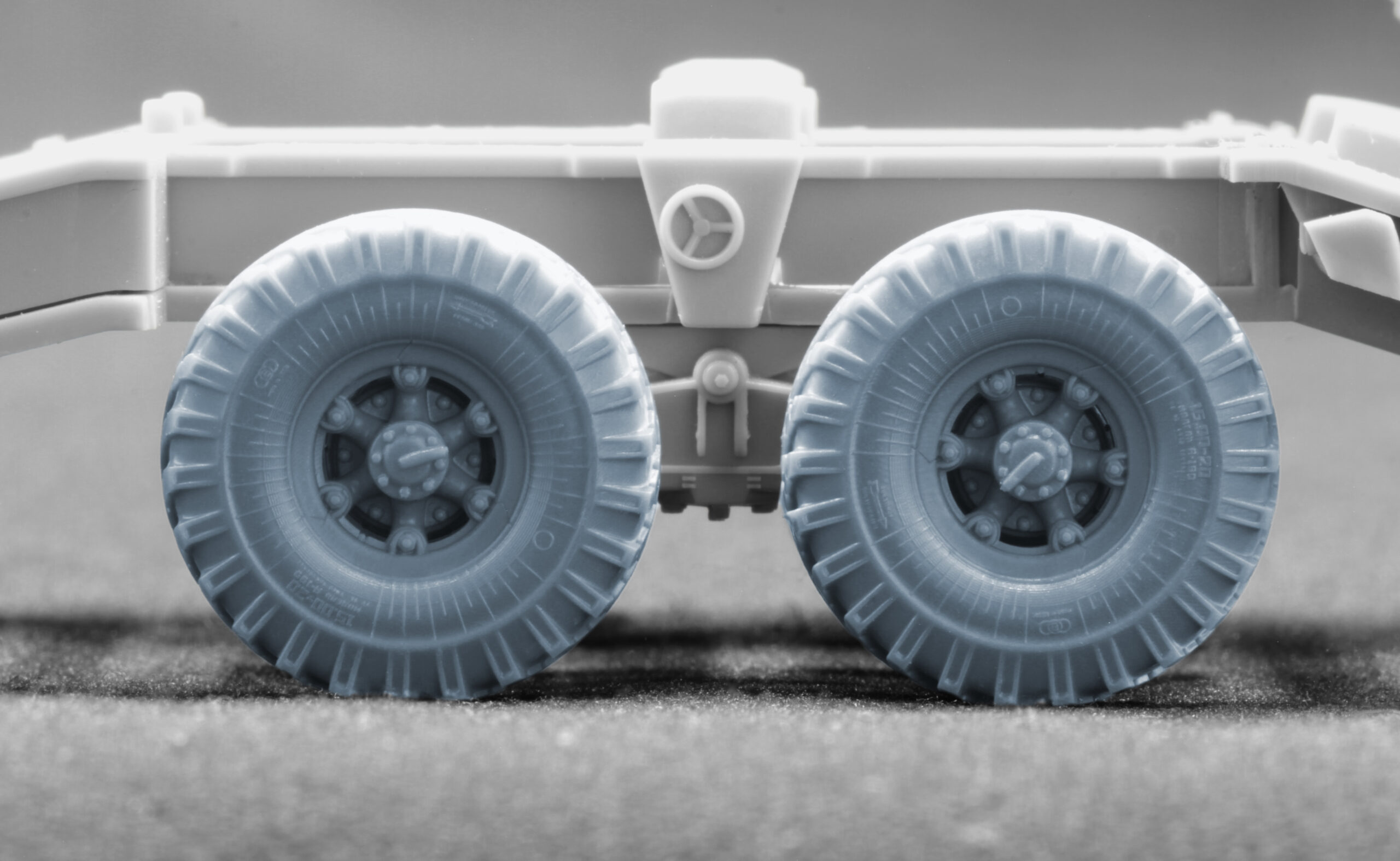Щоб ваша модель важкого напівпричепа ChMZAP-5247G виглядала максимально реалістично, ми створили чотири набори високодеталізованих 3D-друкованих коліс у 1:35 та 1:72 масштабах, у двох варіантах:
