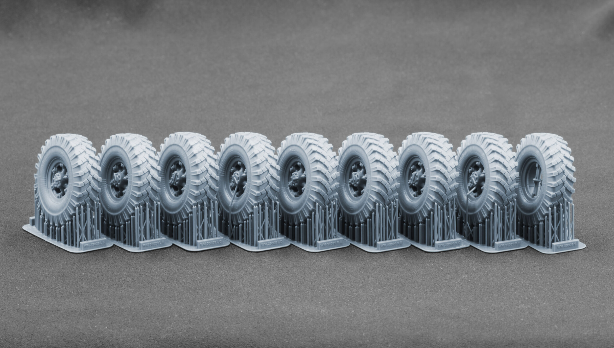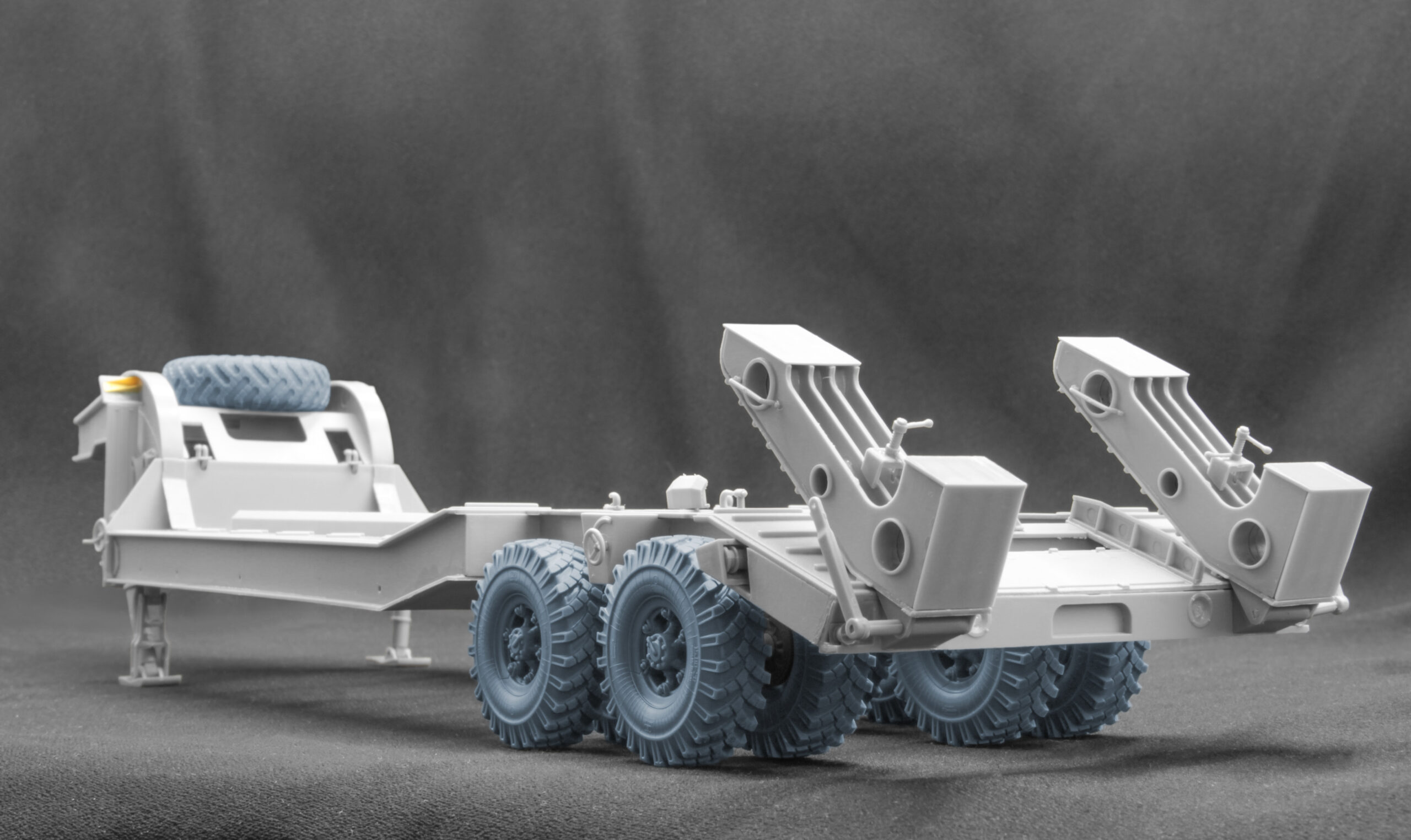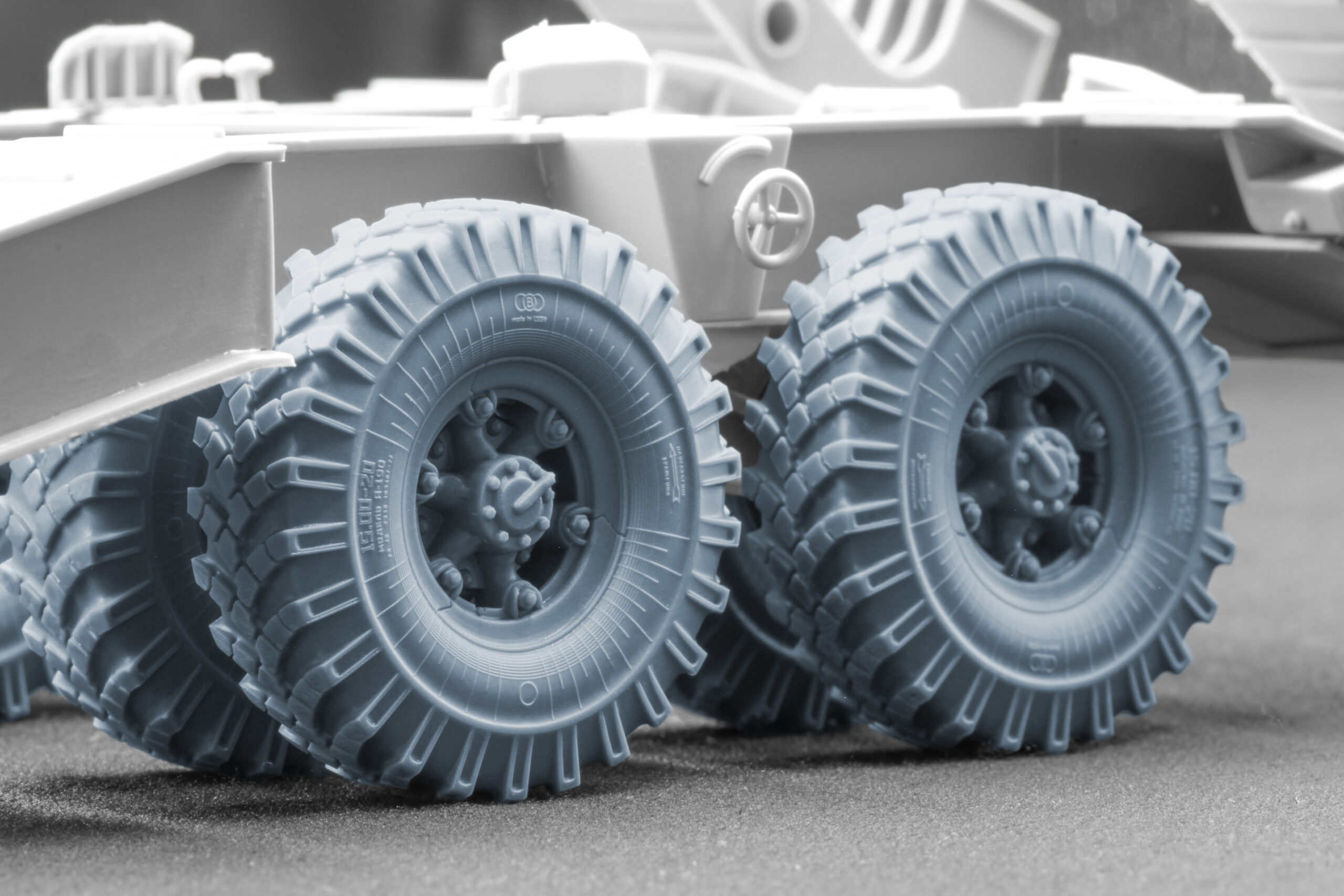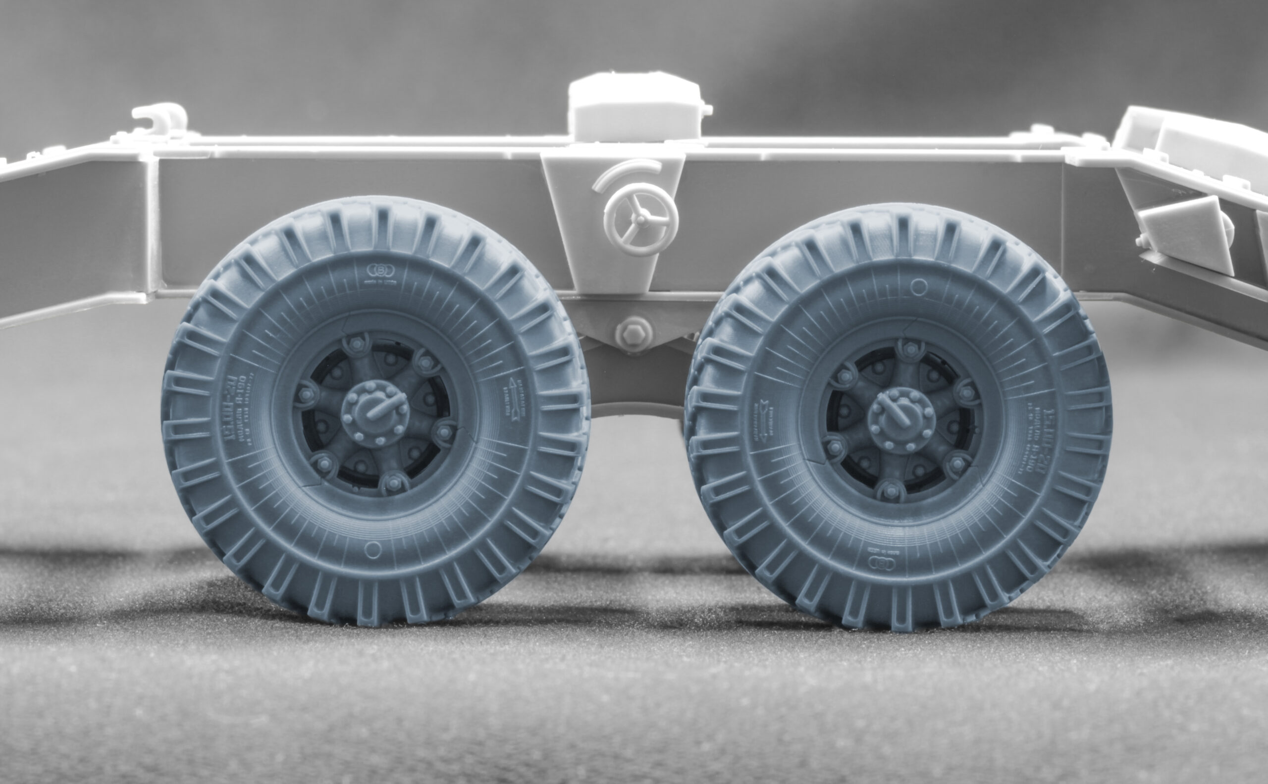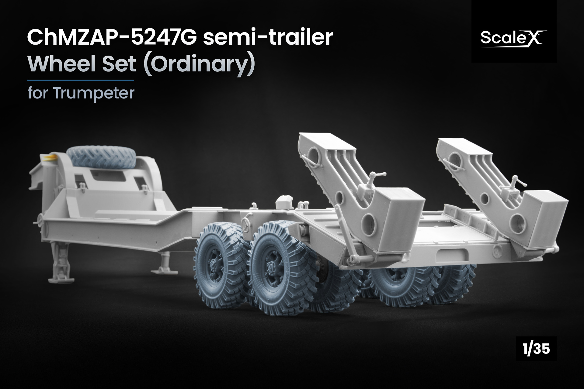 Щоб ваша модель важкого напівпричепа ChMZAP-5247G виглядала максимально реалістично, ми створили чотири набори високодеталізованих 3D-друкованих коліс у 1:35 та 1:72 масштабах, у двох варіантах: