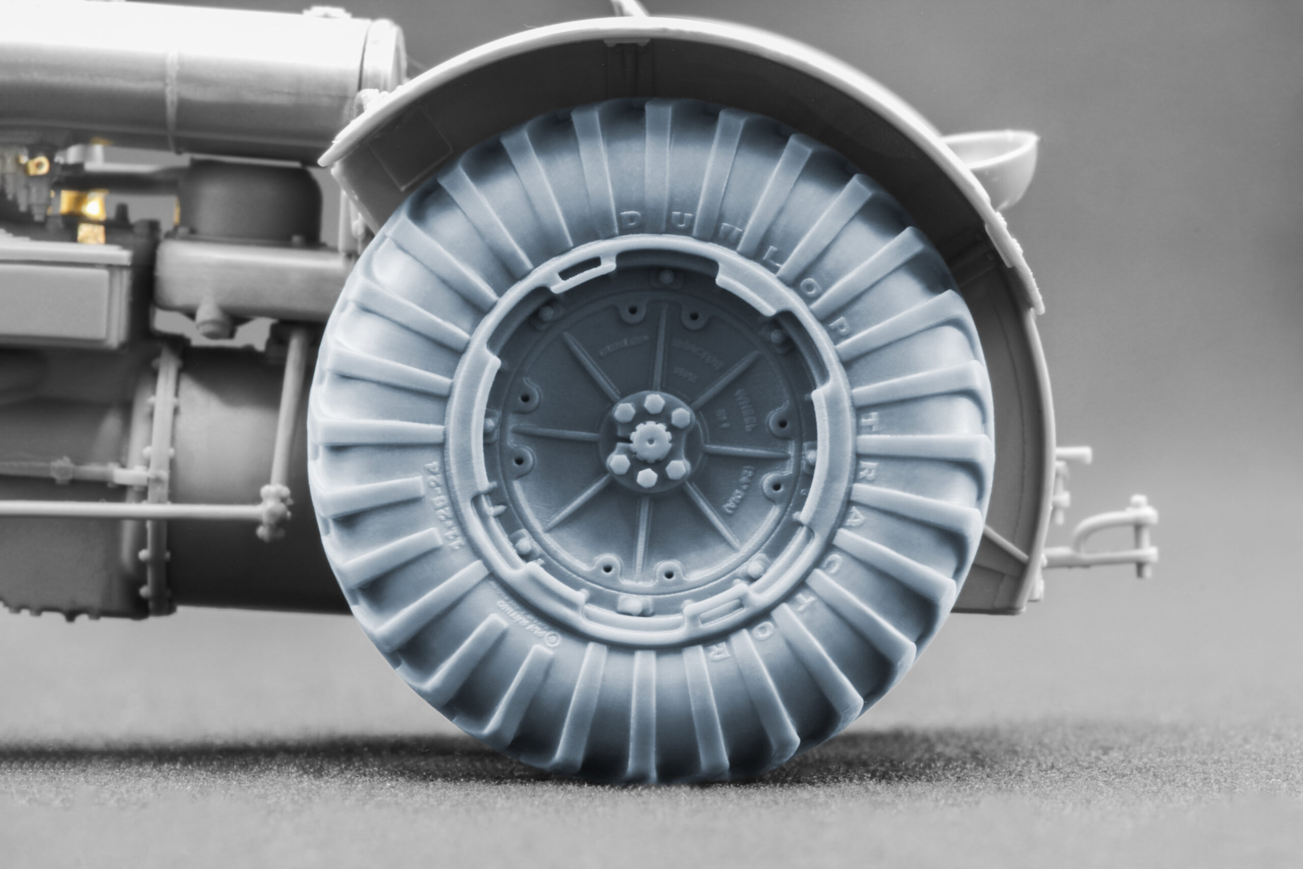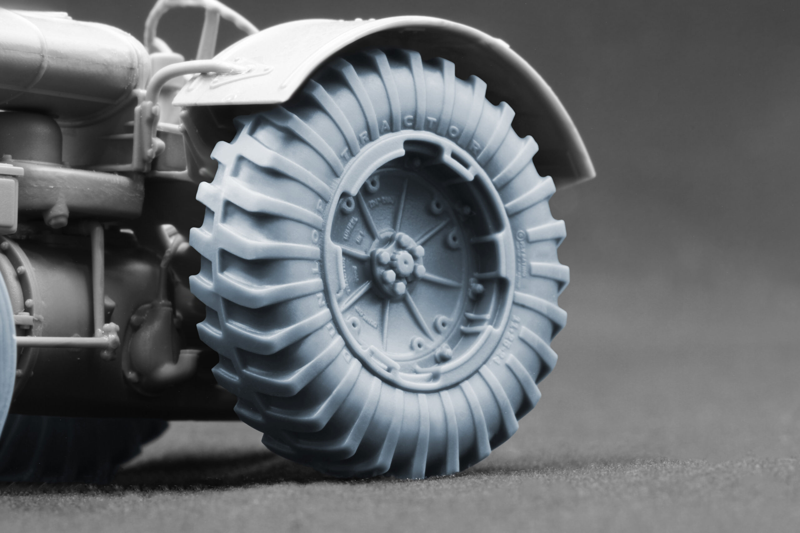 Щоб надати моделі трактора Fordson N максимально автентичного зовнішнього вигляду у промисловій та аеродромній конфігурації, ми створили високодеталізований набір 3D-друкованих коліс, що точно відтворює типи шин, які найчастіше використовувалися на військових аеродромах RAF під час Другої світової війни.