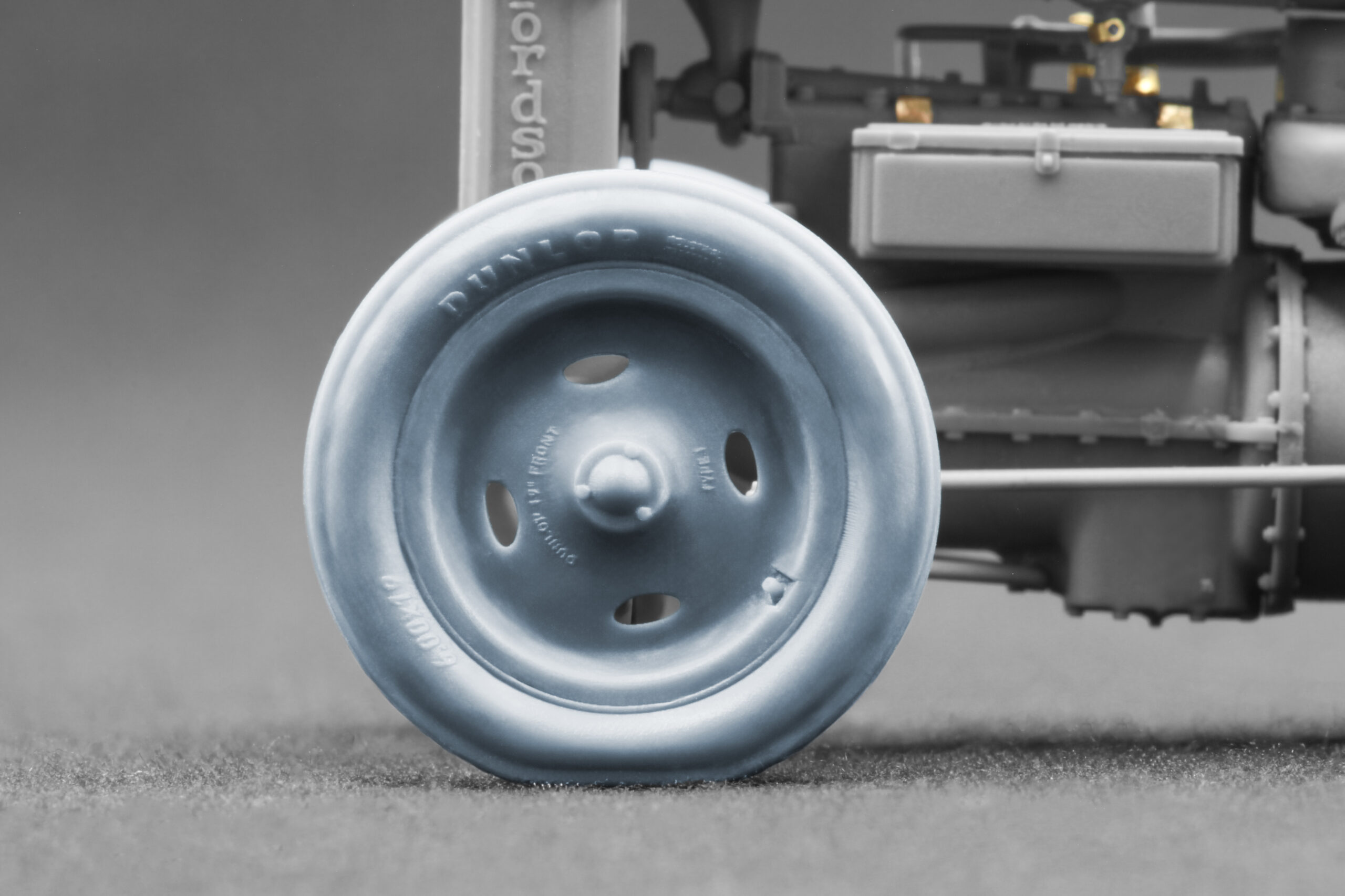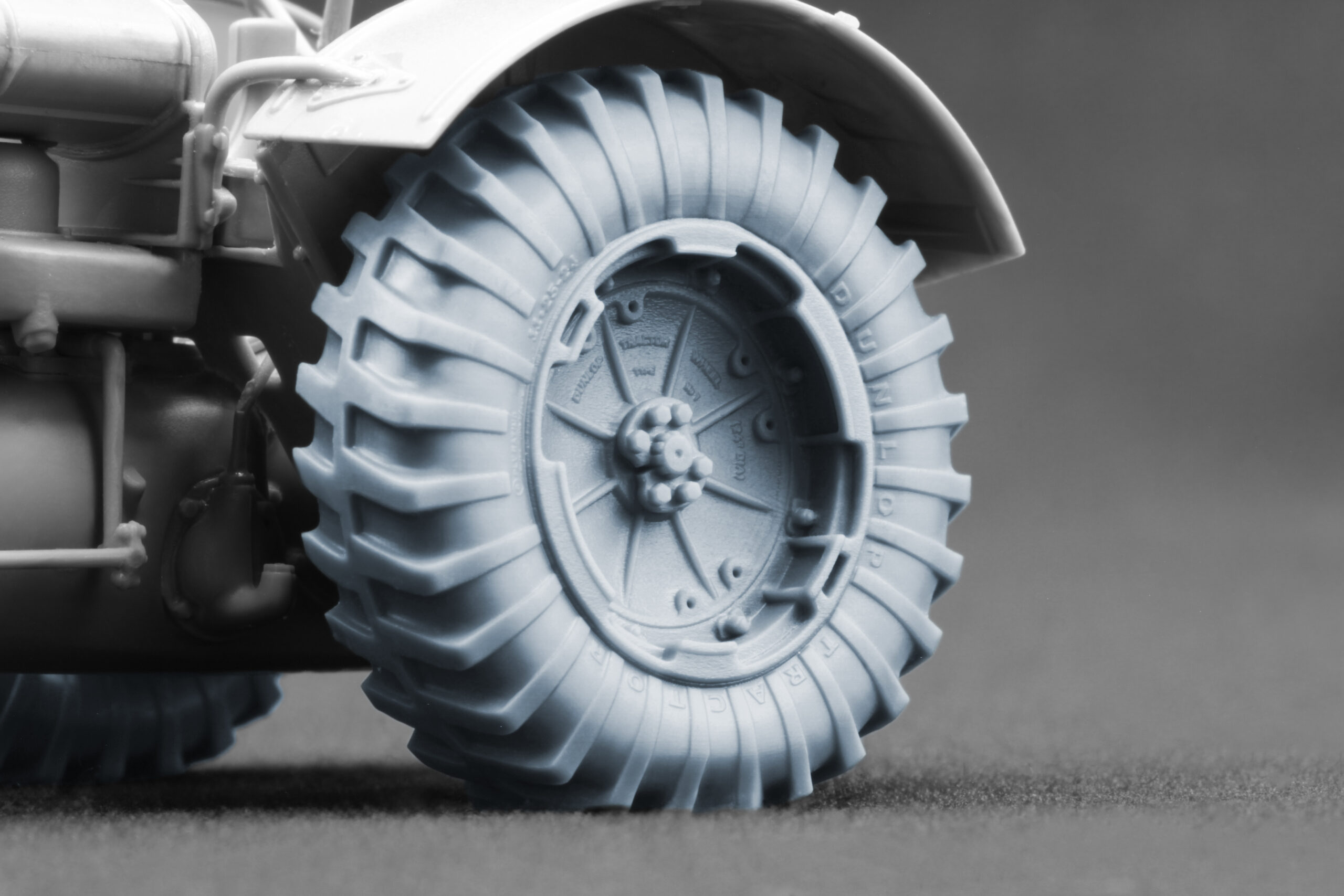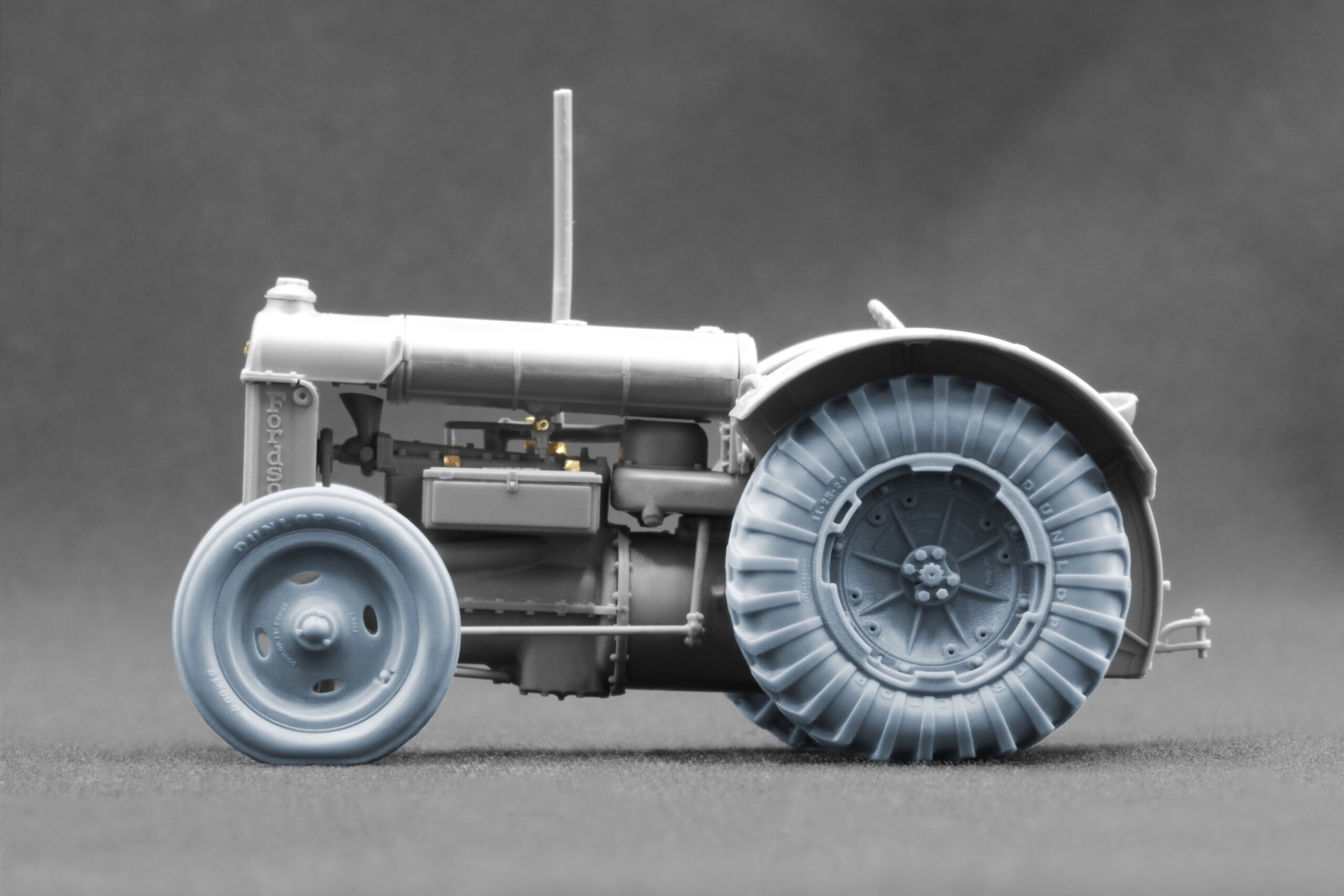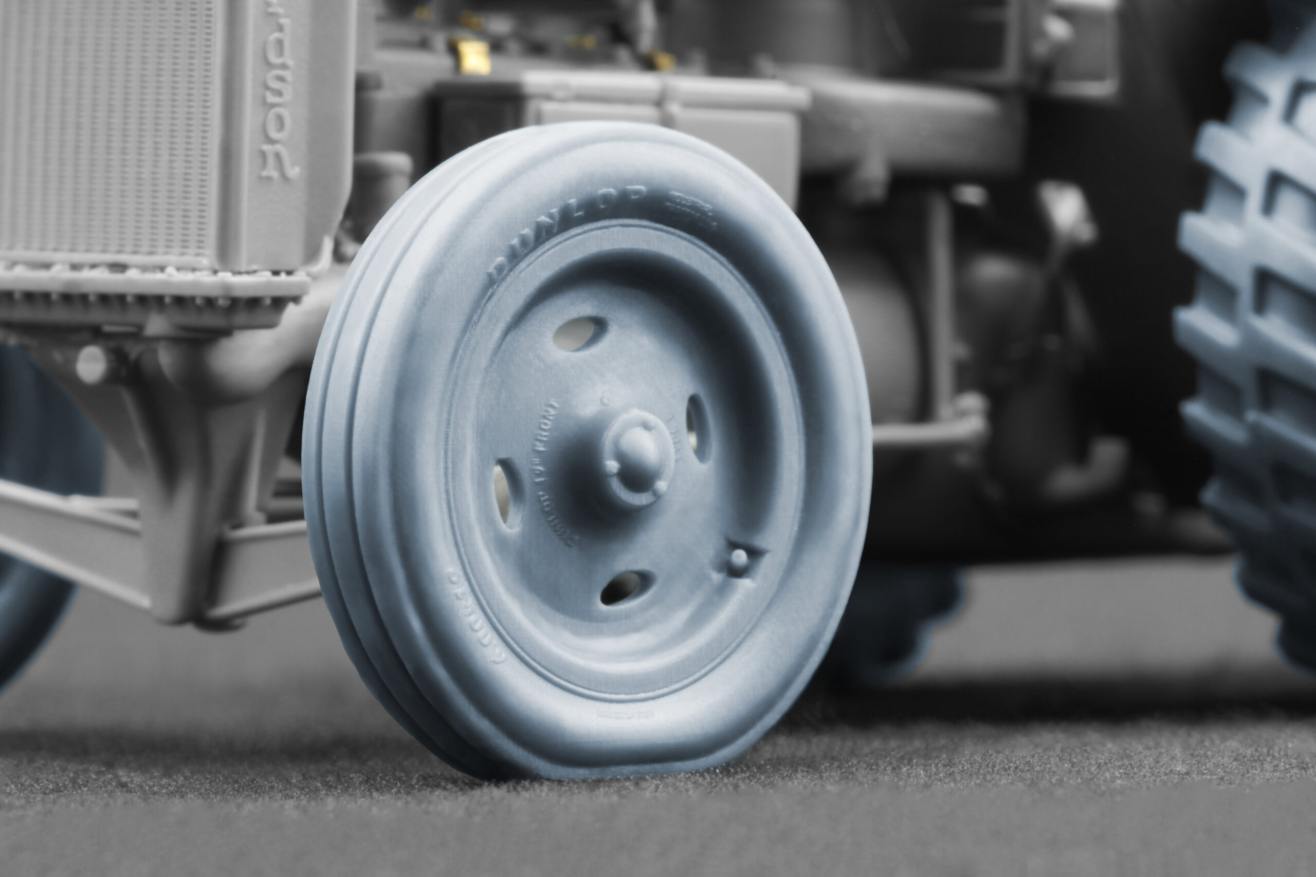 Щоб надати моделі трактора Fordson N максимально автентичного зовнішнього вигляду у промисловій та аеродромній конфігурації, ми створили високодеталізований набір 3D-друкованих коліс, що точно відтворює типи шин, які найчастіше використовувалися на військових аеродромах RAF під час Другої світової війни.