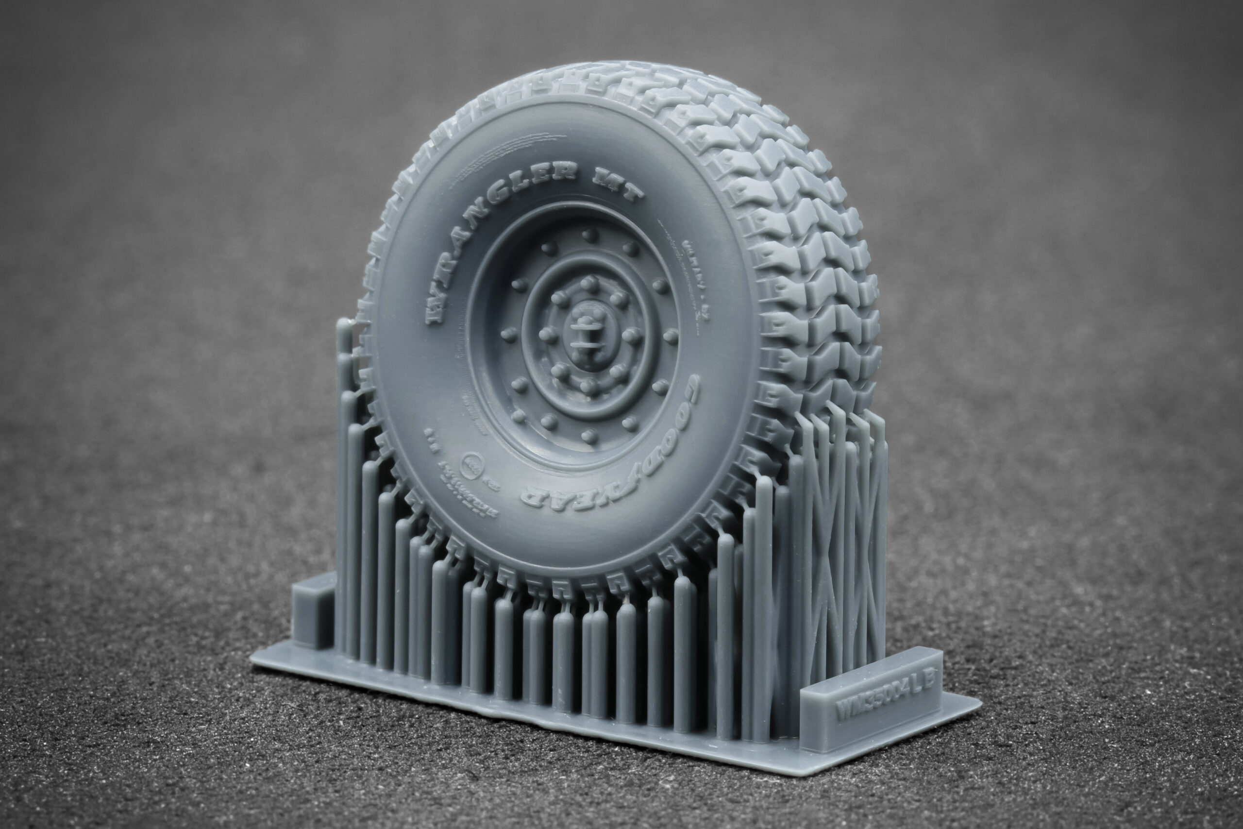 3D-друк дозволив досягти глибини деталізації, яку неможливо реалізувати в стандартних гумових колесах з наборів. Після встановлення наша продукція створює враження справжньої масивної техніки в масштабі: з ефектом ваги, навантаження та справжності.