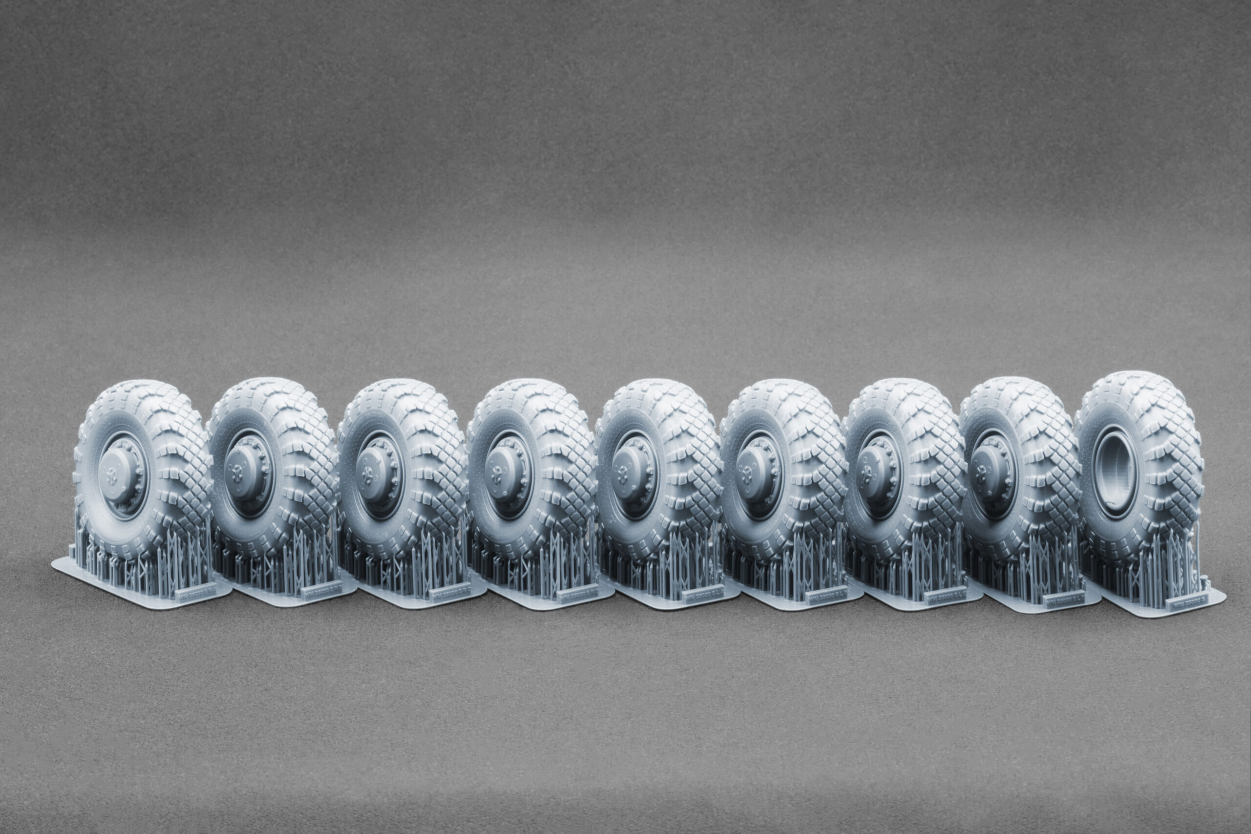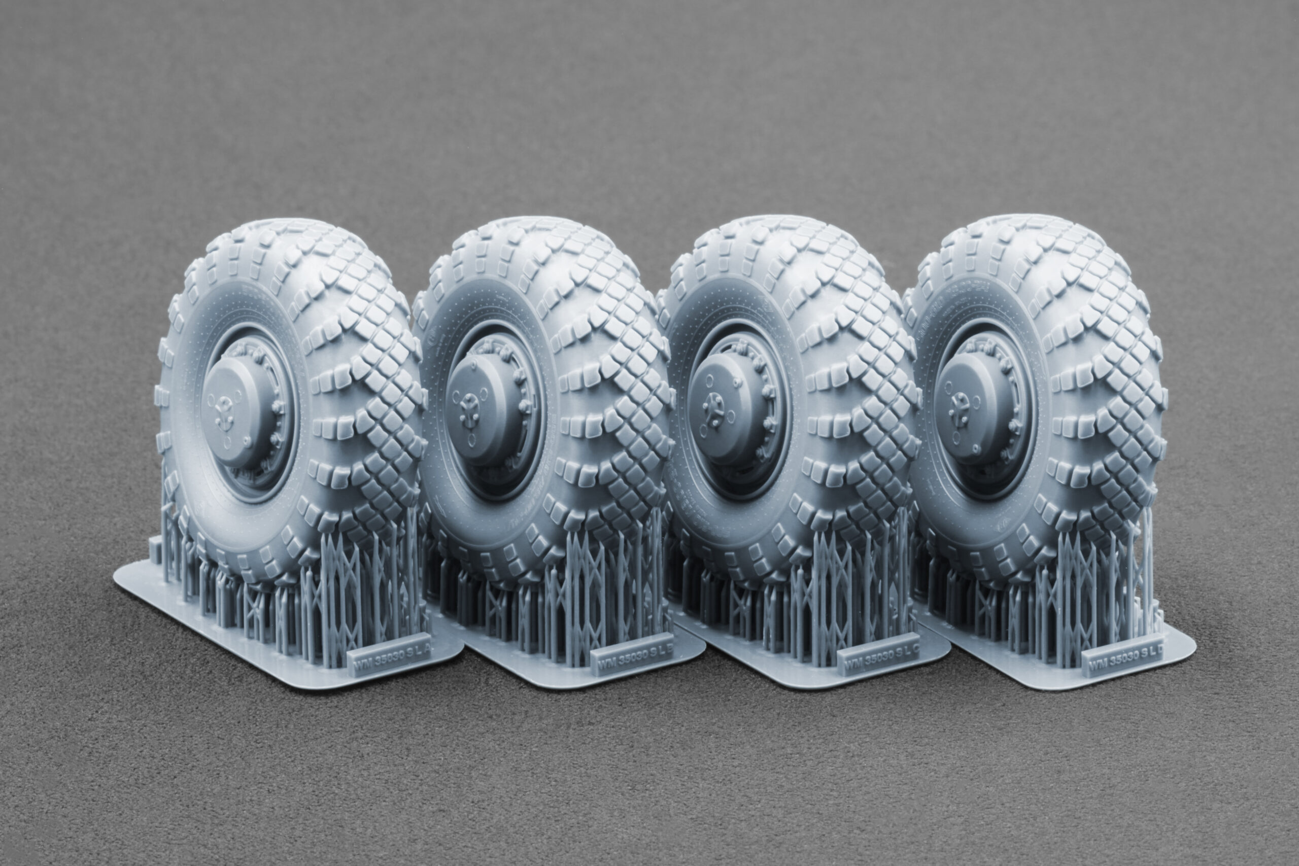 Кожне колесо точно відтворює малюнок протектора, геометрію диска та деталі боковини справжніх шин V-202, що використовувалися на важких військових тягачах. Під час розробки ми вивчали архівні фотографії, технічну документацію та довідкові матеріали, щоб максимально точно передати автентичні пропорції та характерні особливості оригінальних коліс.