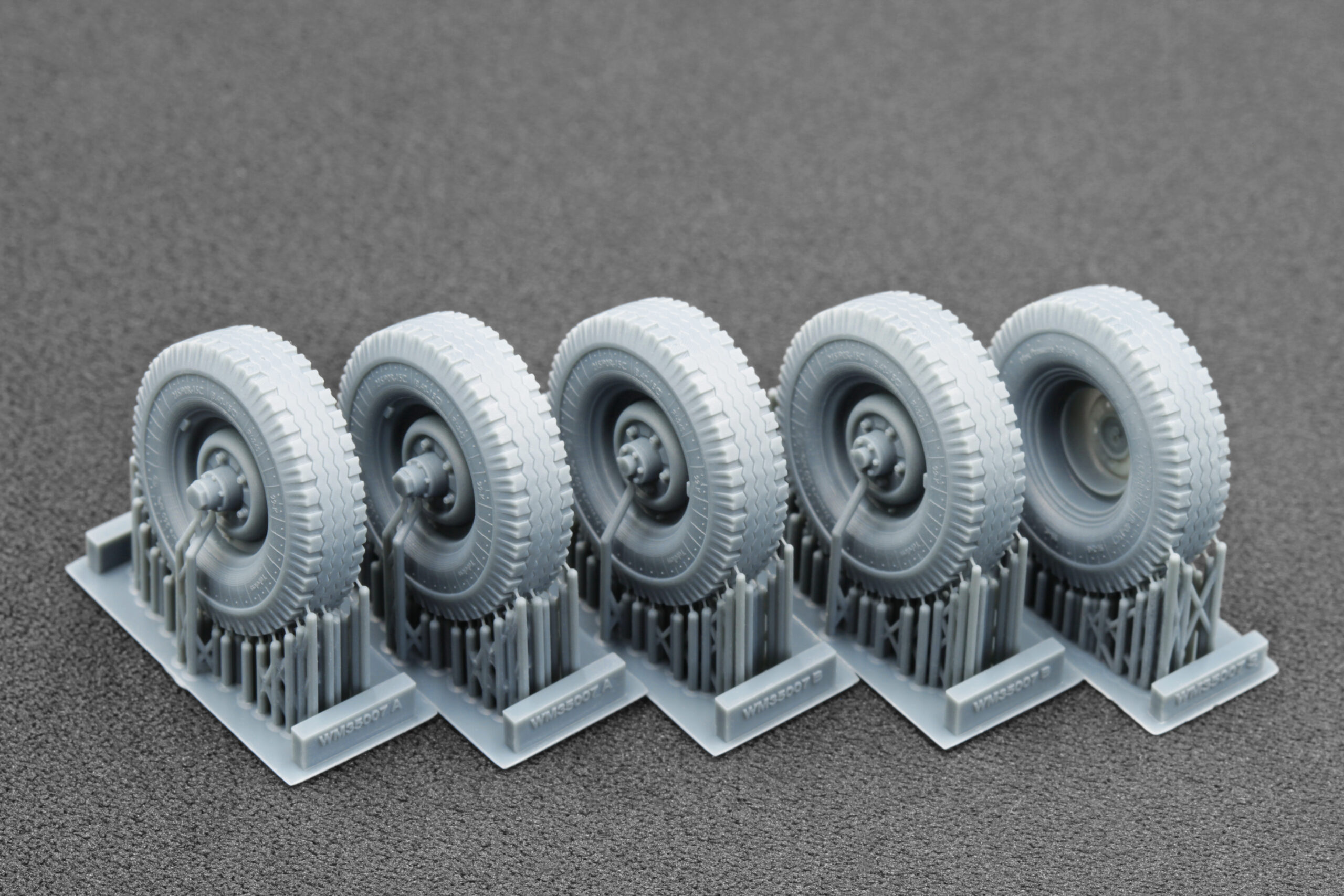 Кожне колесо розроблене на основі реальних прототипів: детально відтворено малюнок протектора, боковини шин та диски. Високоточний фотополімерний 3D-друк забезпечує виняткову деталізацію, що значно перевершує стандартні деталі з наборів.