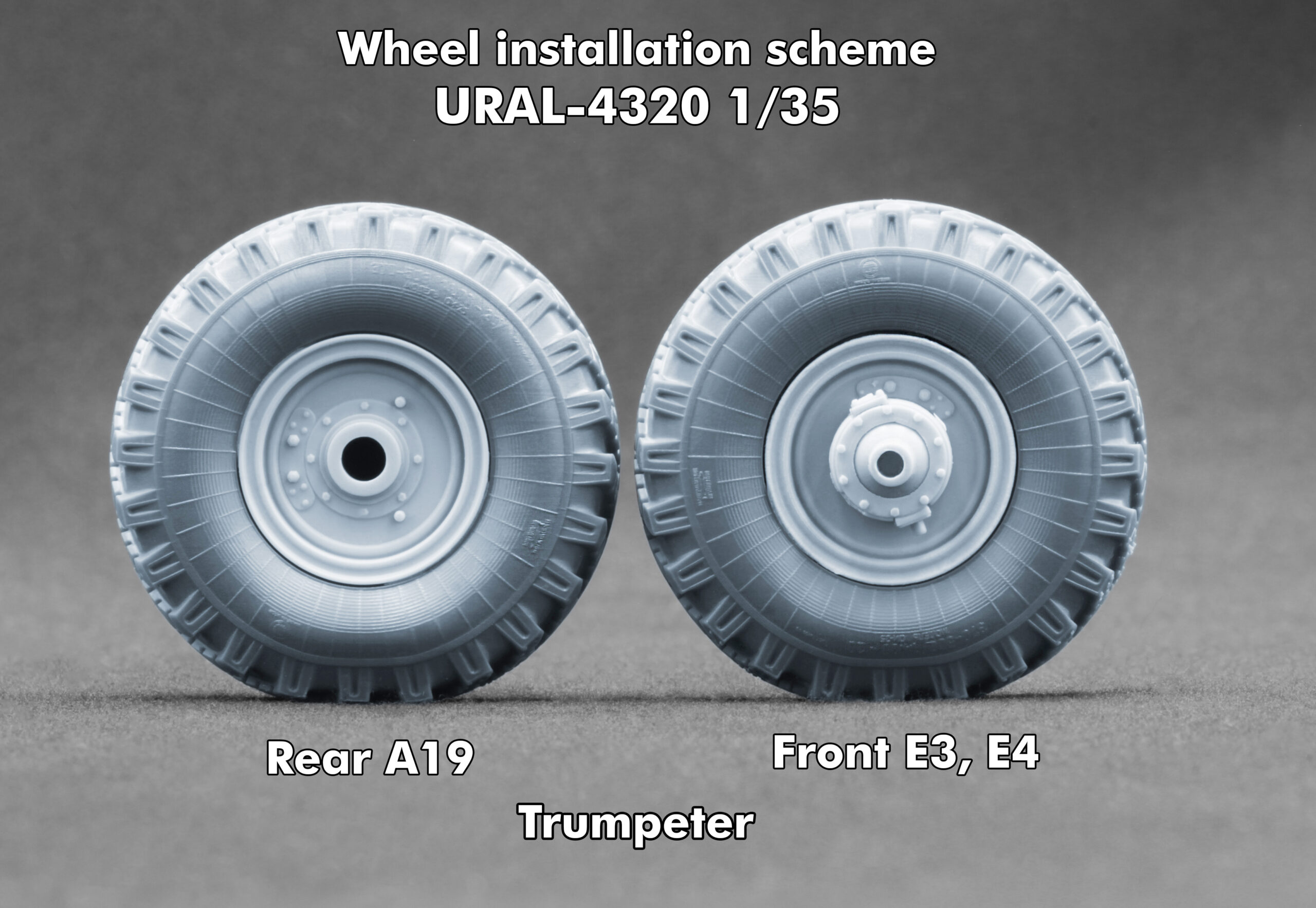 Колеса встановлюються на стандартні посадкові місця E3, E4 та A19 наборів Trumpeter без додаткової доробки.