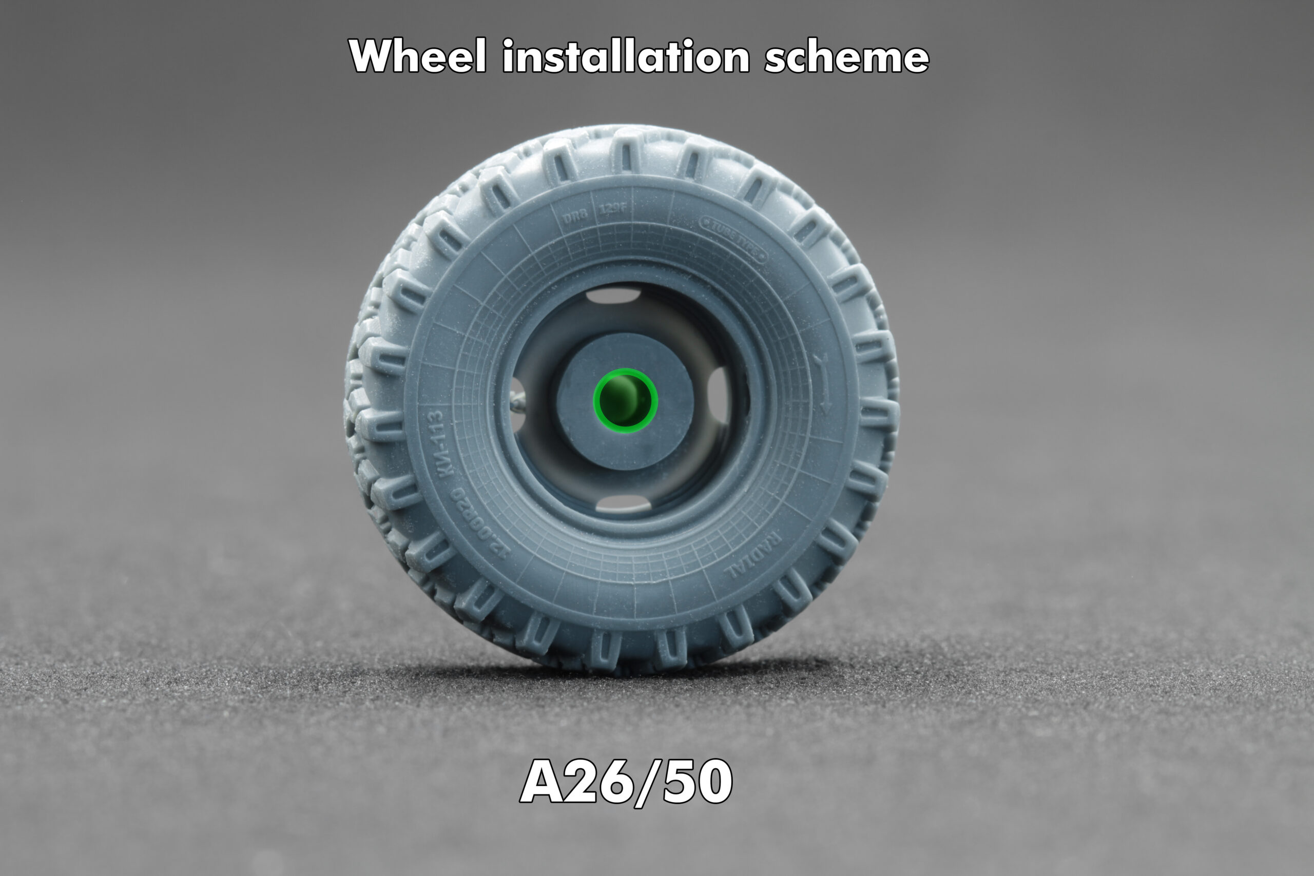 Колеса встановлюються на стандартні посадкові місця A26/50 наборів ICM без додаткової доробки.