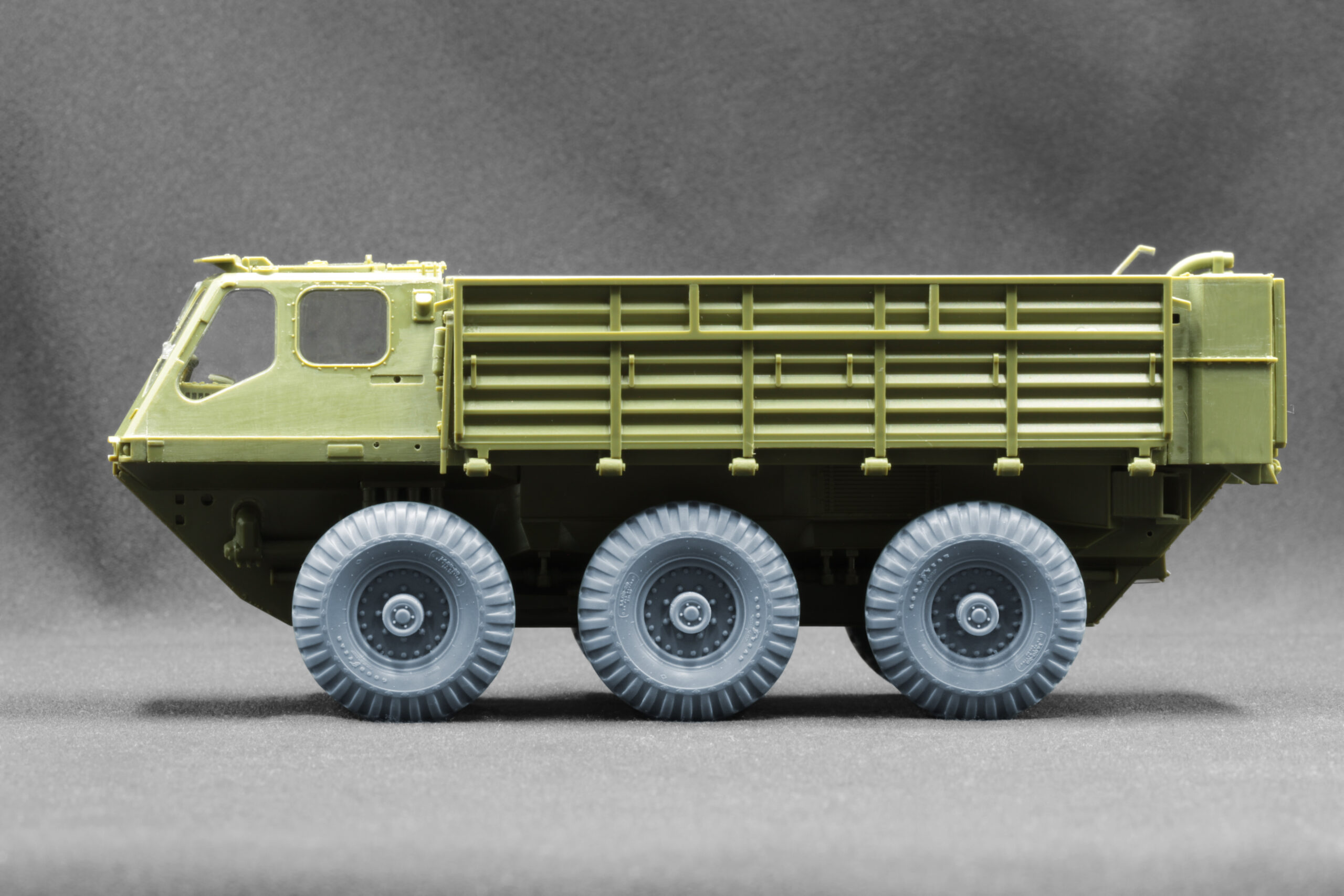 Each element precisely replicates the shape of the rims, tread pattern, and sidewall details of the original Stalwart tires. We carefully studied photographs, blueprints, and technical documentation to capture the authentic geometry and proportions of the real vehicle.