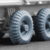 Each element precisely replicates the shape of the rims, tread pattern, and sidewall details of the original Stalwart tires. We carefully studied photographs, blueprints, and technical documentation to capture the authentic geometry and proportions of the real vehicle.