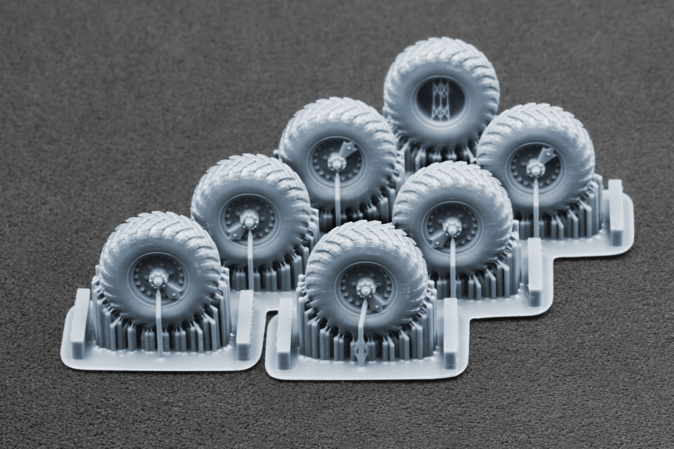 Each component features a sharp tread pattern, correct rim geometry, and clean mounting surfaces, making these wheels an ideal upgrade over standard kit parts.