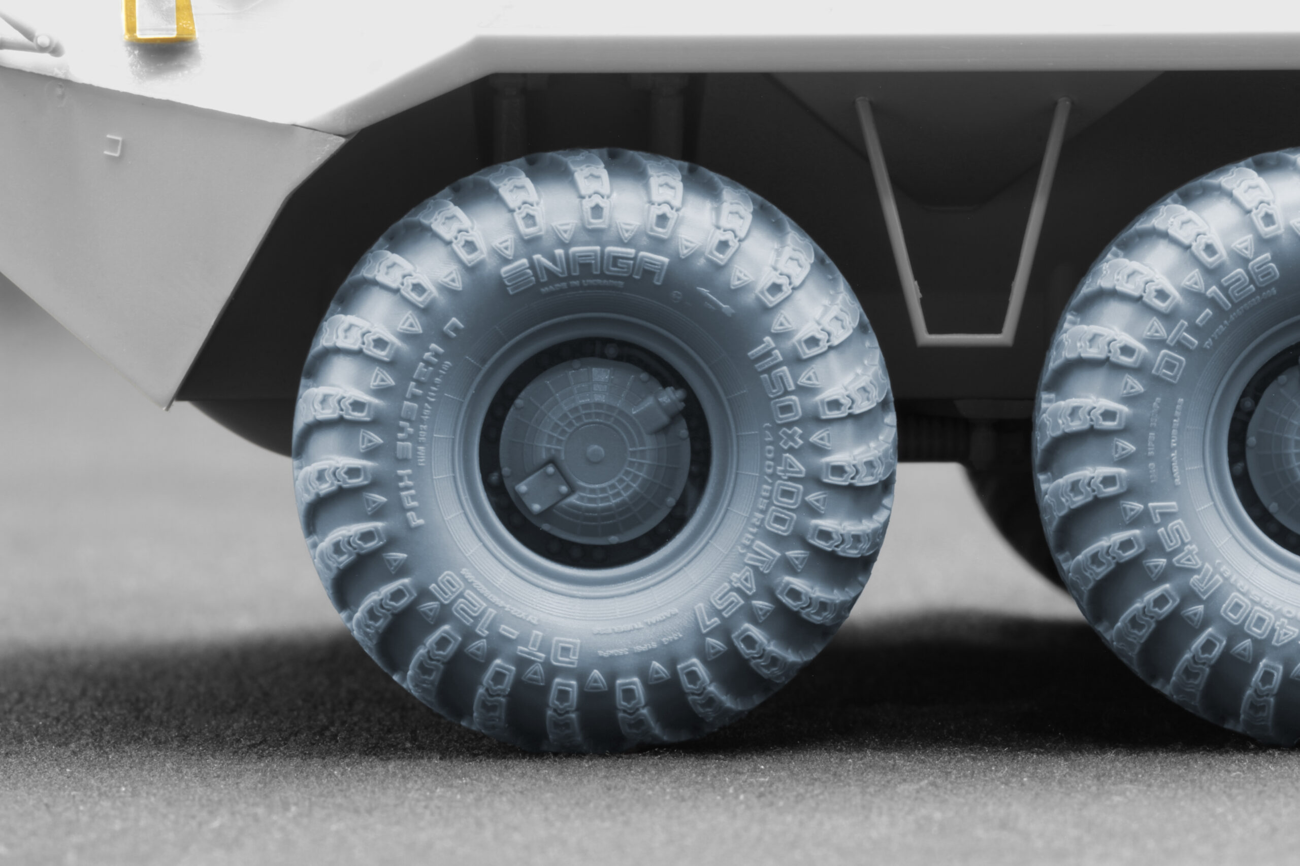 - Authenticity: based on the real DT-126 Snaga tire from Ukrainian brand “Dniproshyna”— an exact match for Ukrainian BTR-80 references.