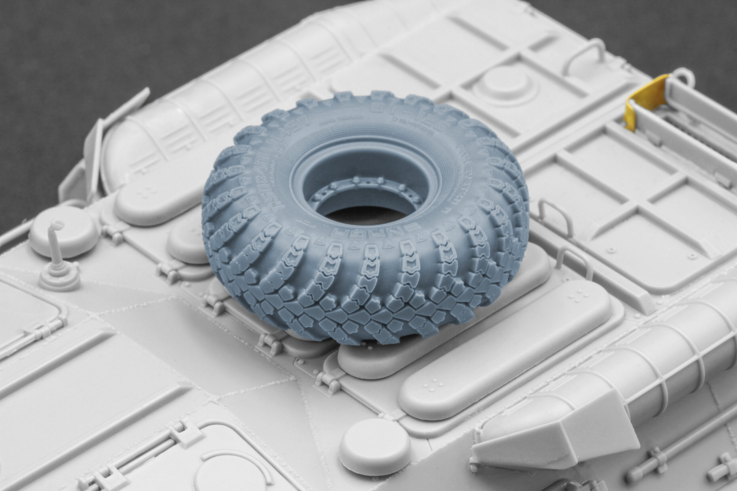 To make your BTR-80 armored personnel carrier model look as realistic as possible, we created two versions of 3D-printed wheels in 1/35 scale: Ordinary and Sagged (with a natural weight effect). These wheels accurately reproduce the DT-126 Snaga tire type, making them an ideal choice for modelers who value both historical and technical authenticity.