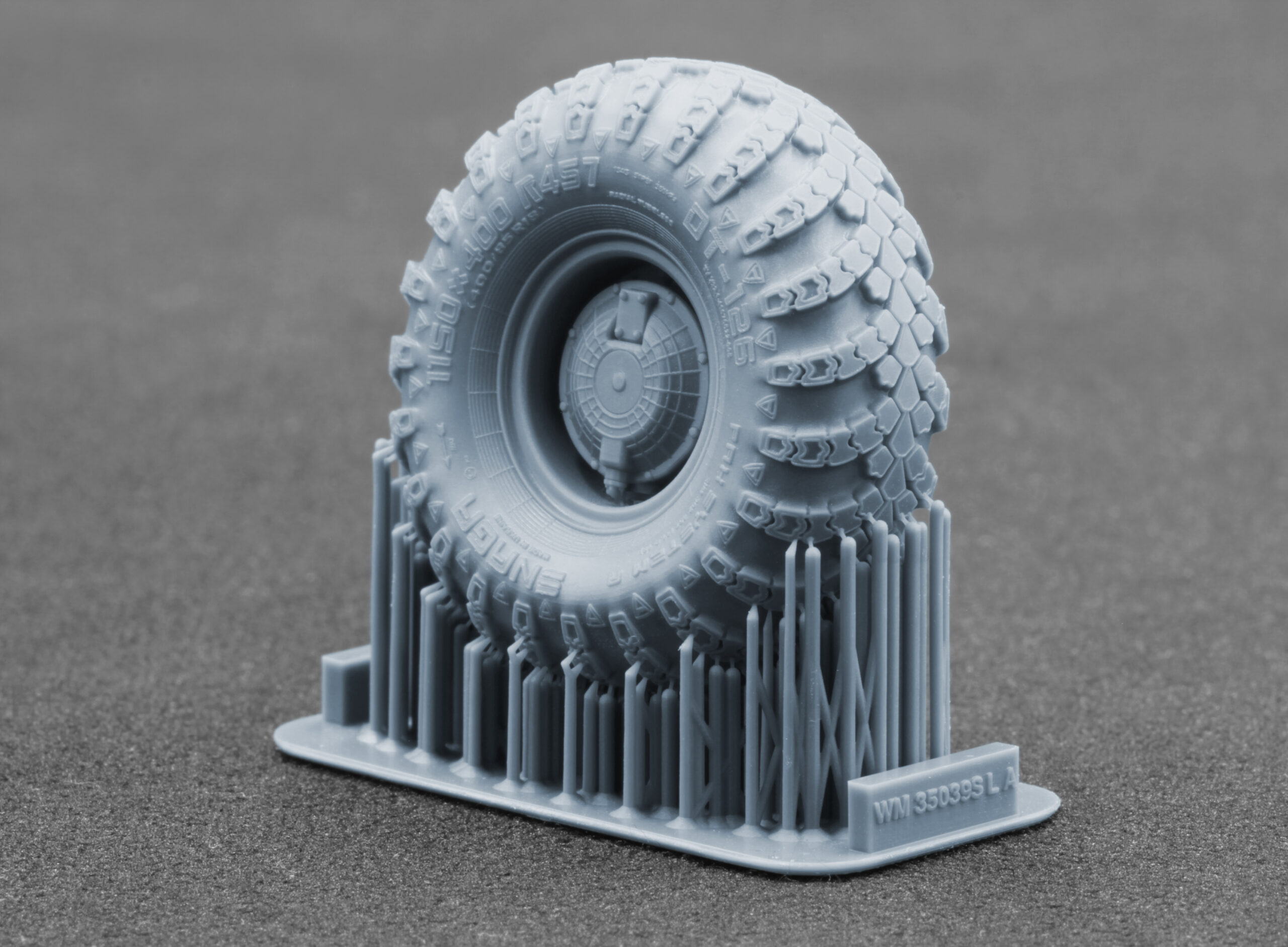 We carefully studied photos, technical materials, and available samples to recreate the tread pattern, sidewall profile, and rim geometry with maximum precision. High-resolution photopolymer 3D printing allows for a level of detail impossible to achieve with standard rubber or injection-molded parts — crisp tread edges, natural sidewall deformation on the “sagged” version, and perfectly shaped mounting surfaces.