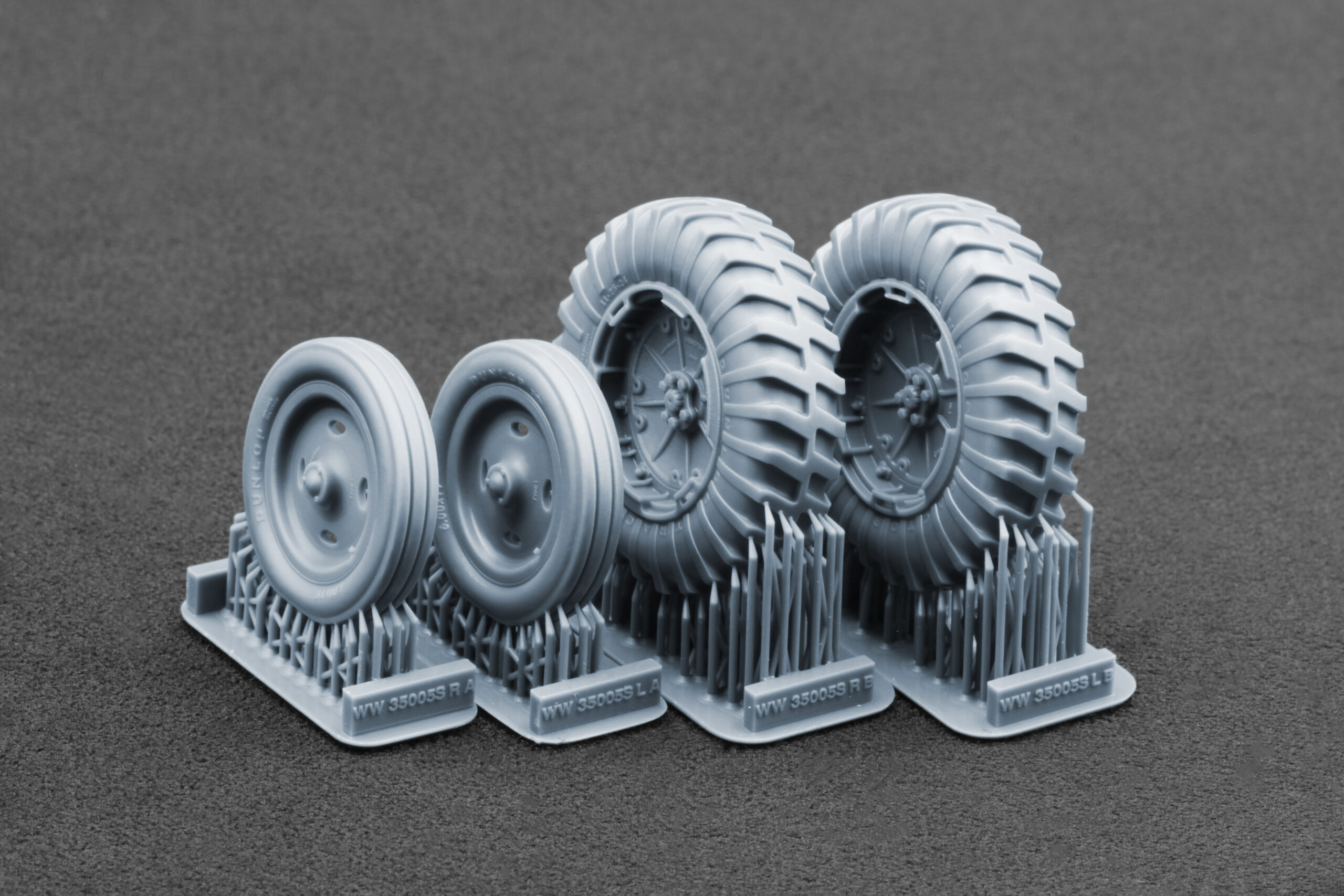 To give your Fordson N model an authentic appearance in its industrial and airfield configuration, we created a highly detailed 3D-printed wheel set that accurately recreates the types of tires commonly used on RAF airfields during World War II.