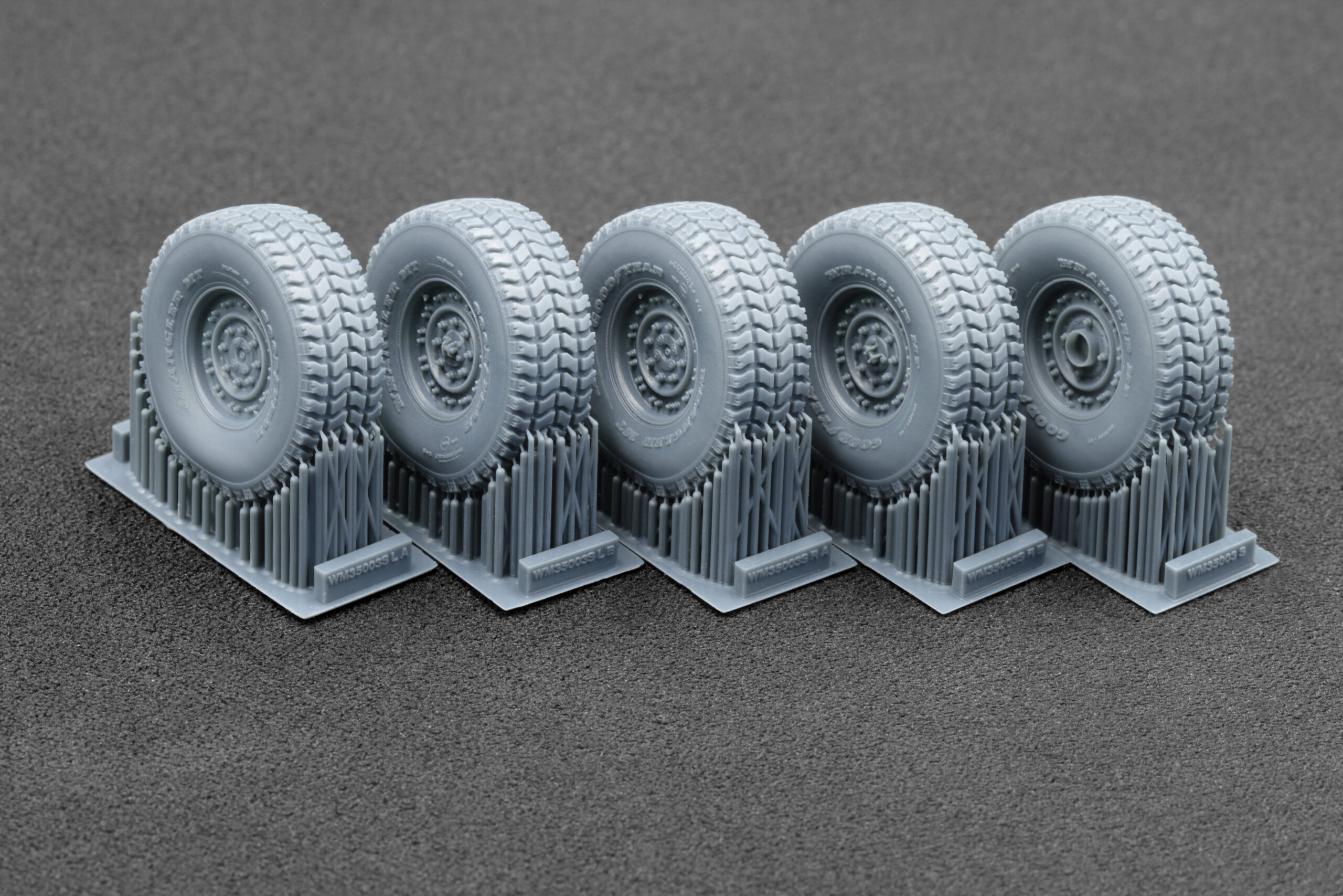 In developing these sets, we studied numerous photos, technical documentation, and original tire samples to recreate the authentic tread pattern, sidewall shape, rim design, and tire sag. The result is a highly realistic set that captures both the look of a brand-new vehicle and one with visible field wear.