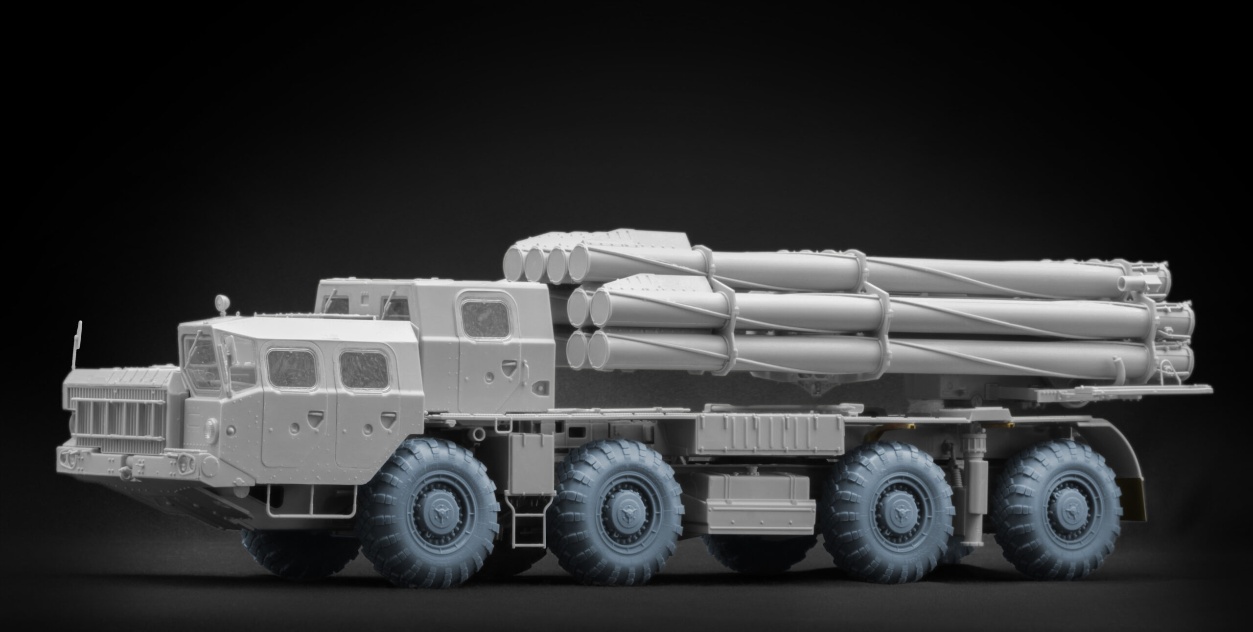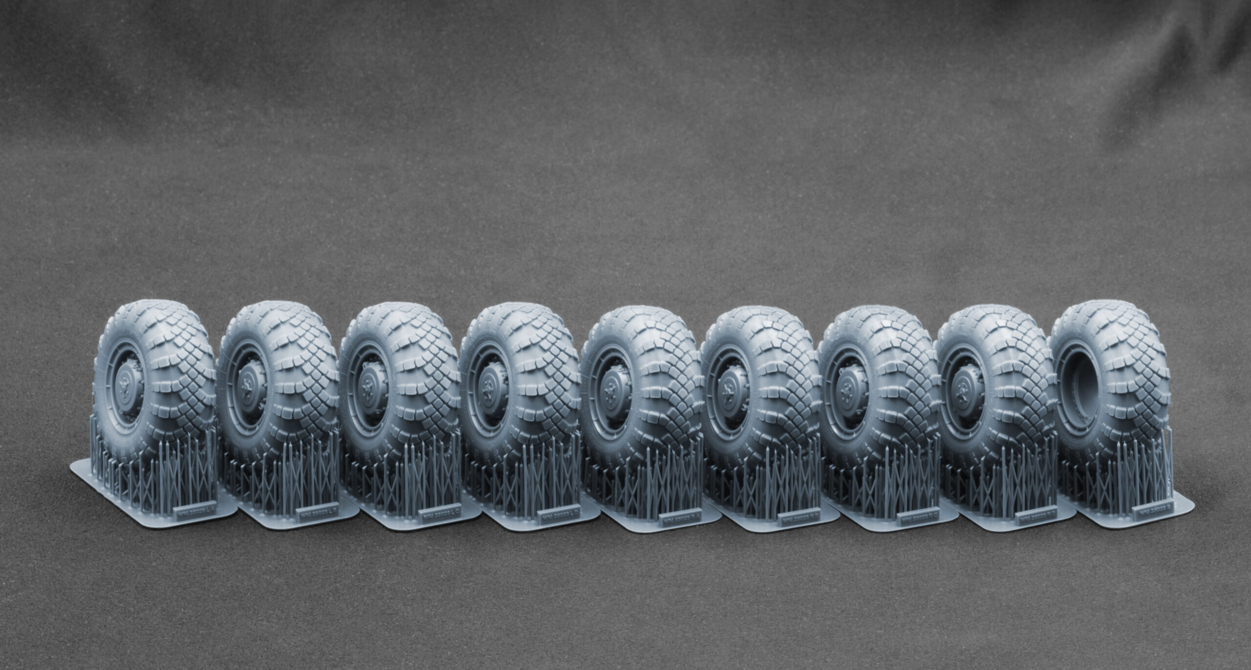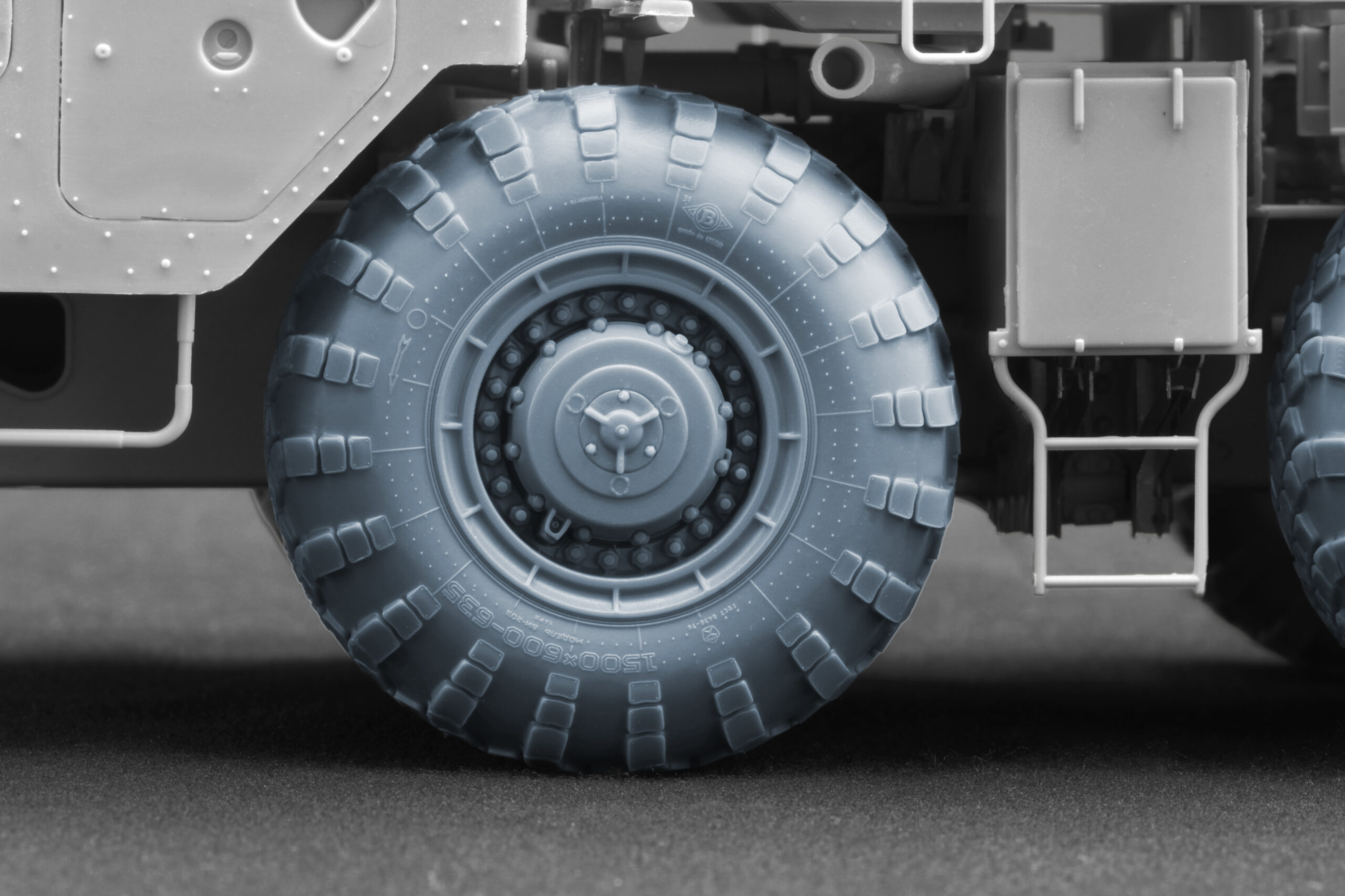 To make your model of the iconic Soviet multi-purpose chassis MAZ-543 / MAZ-7310 look even more realistic, we’ve created a set of highly detailed 3D-printed wheels with V-203 tires, available in two versions: