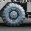 Each wheel is produced with an accurate reproduction of the V-203 tread pattern, rim geometry, and sidewall details used on real MAZ heavy chassis. While developing the set, we studied original photographs, technical drawings, and documentation to capture the authentic proportions and characteristic features of the actual tires.