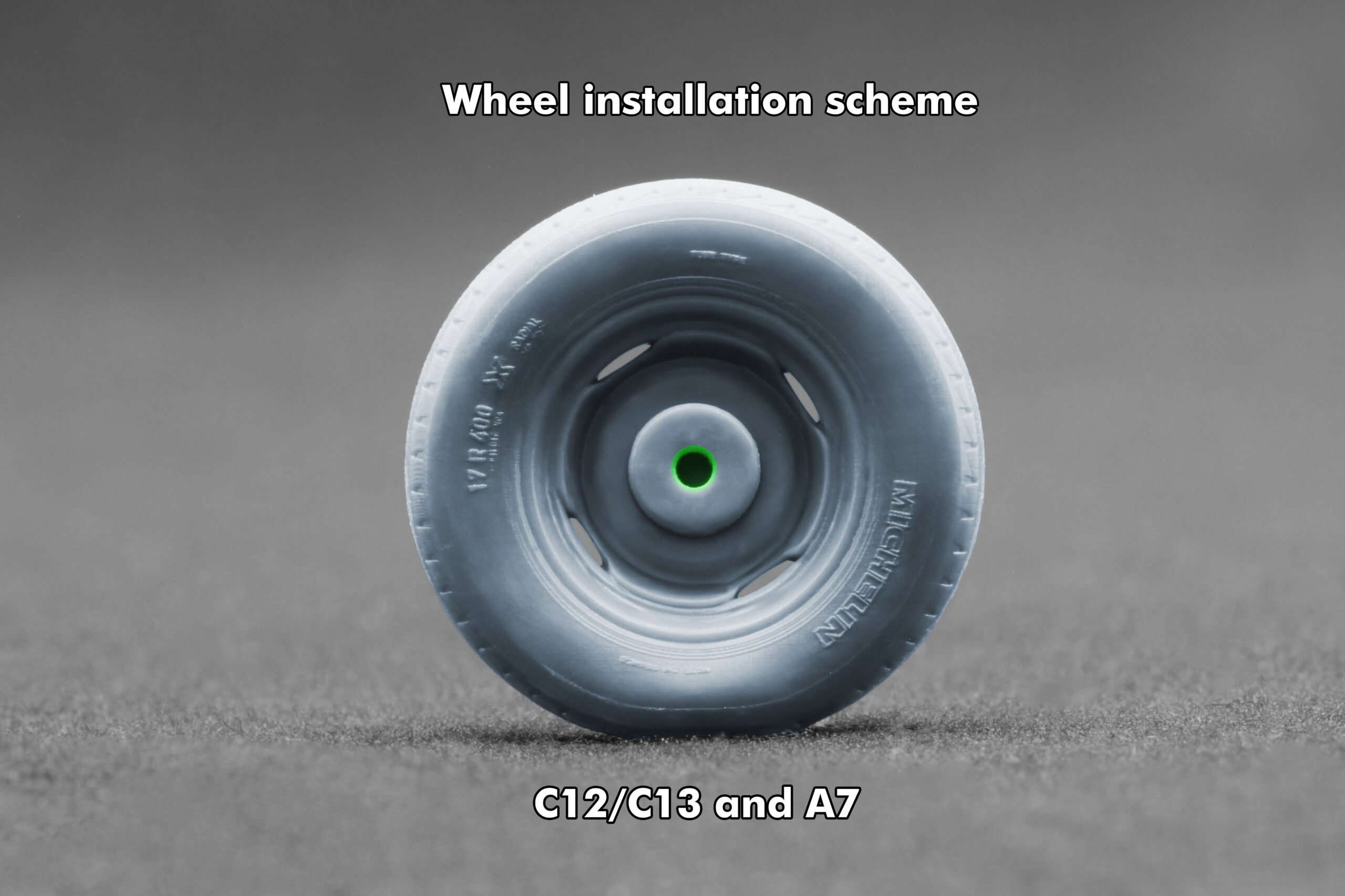 The wheels are designed to fit directly onto the standard mounting points C12/C13 and A7 of AK-Interactive kits without any additional modifications.