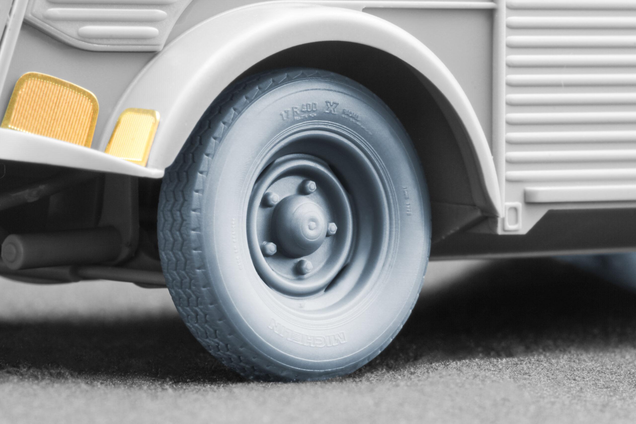 High-resolution photopolymer 3D printing delivers crisp edges, sharp tread definition, and fine detail that exceeds standard injection-molded kit parts.