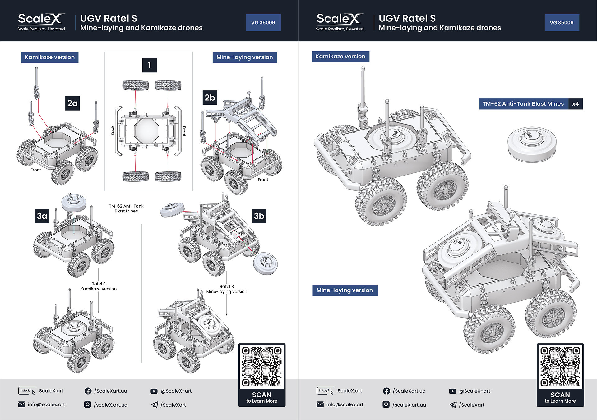ℹ️ Each set includes parts for assembling two Ratel S ground drones in the kamikaze and/or mine-laying configuration with TM-62 mines.