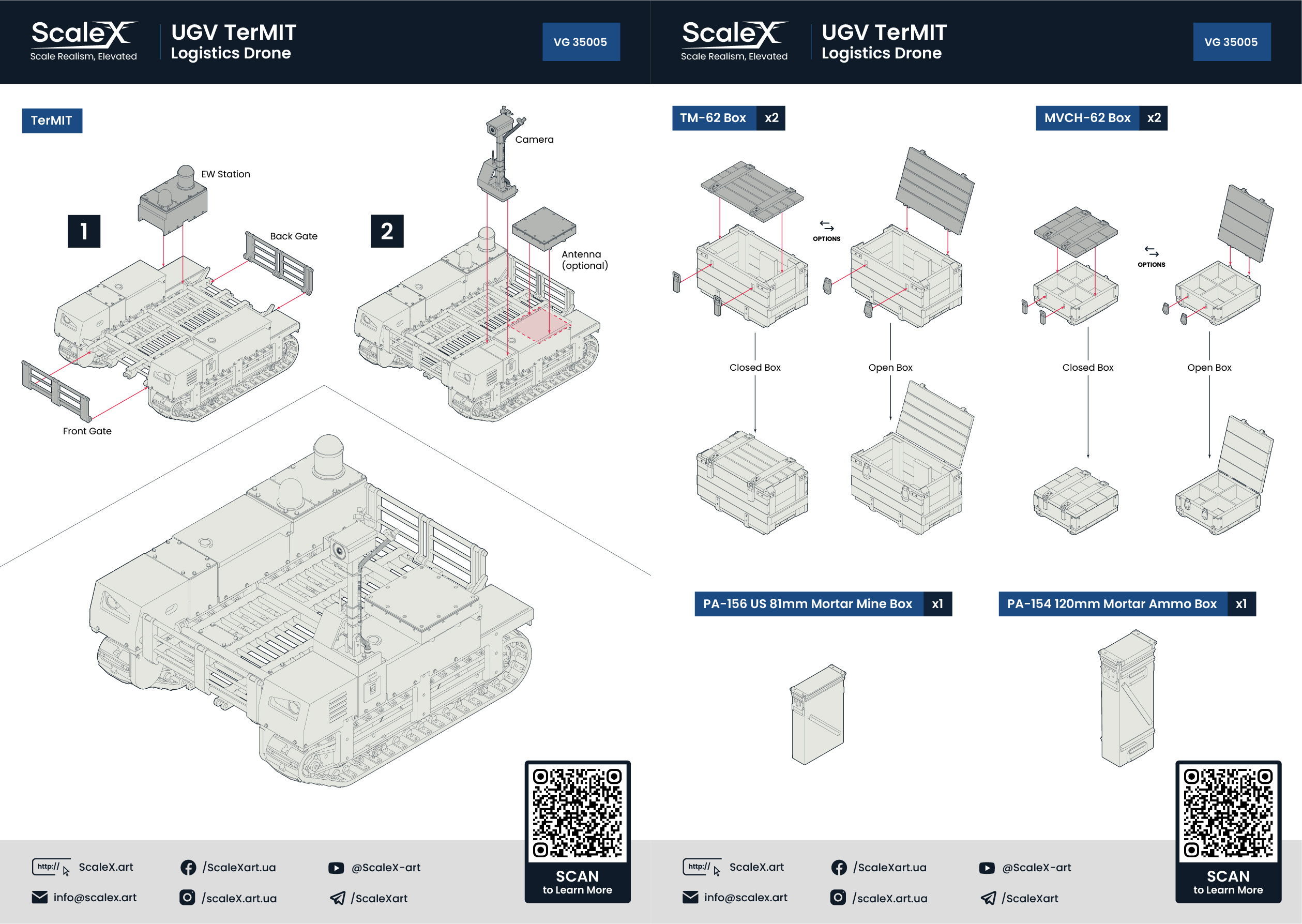 Looking for it? — We created a scale replica of the modular unmanned ground vehicle TerMIT — a compact, versatile platform that combines practicality and adaptability. Now you can assemble a realistic, highly detailed model of a modern engineering-combat robot in 1:35 scale.