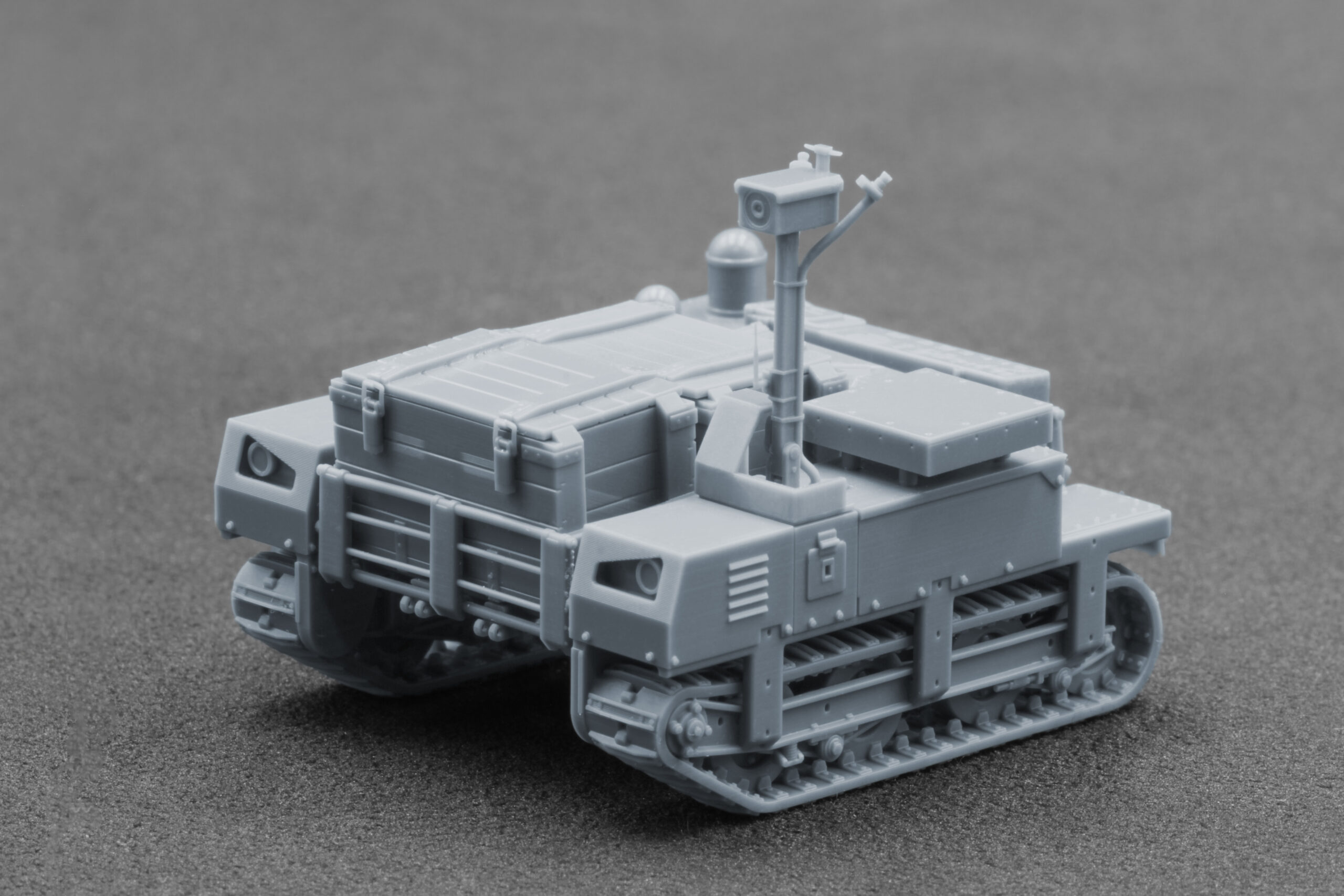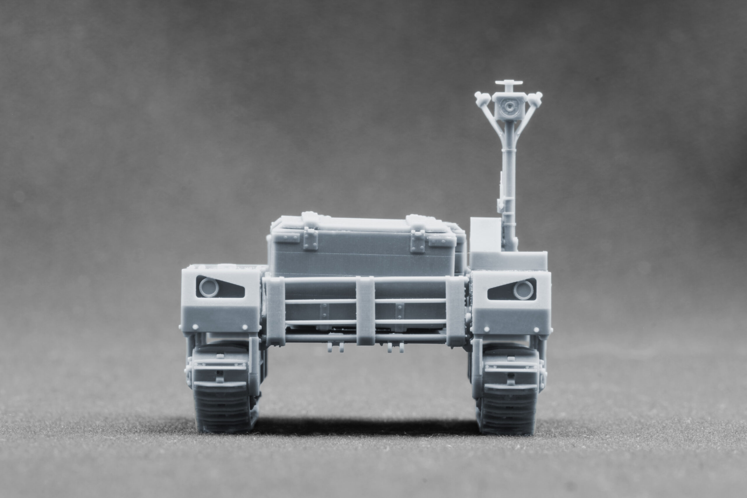 We carefully studied available photos, videos, and technical materials to faithfully reproduce the distinctive features of the TerMIT: the chassis contours, the modular payload deck, weapon and payload mounting points, the running gear, antennas, and small technical details. Thanks to 3D printing, the model is delivered with high geometric accuracy — without the simplifications typical of plastic kits.