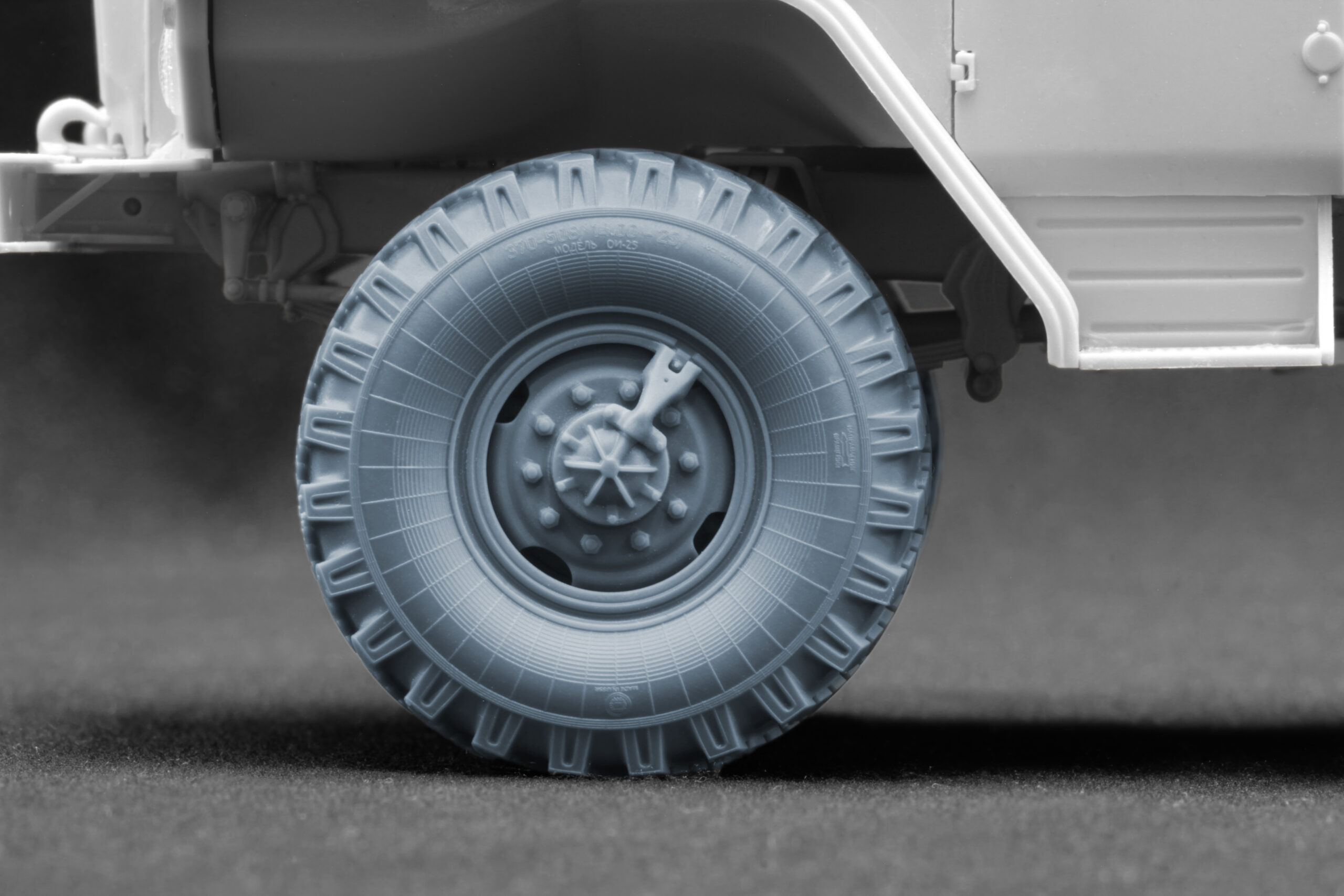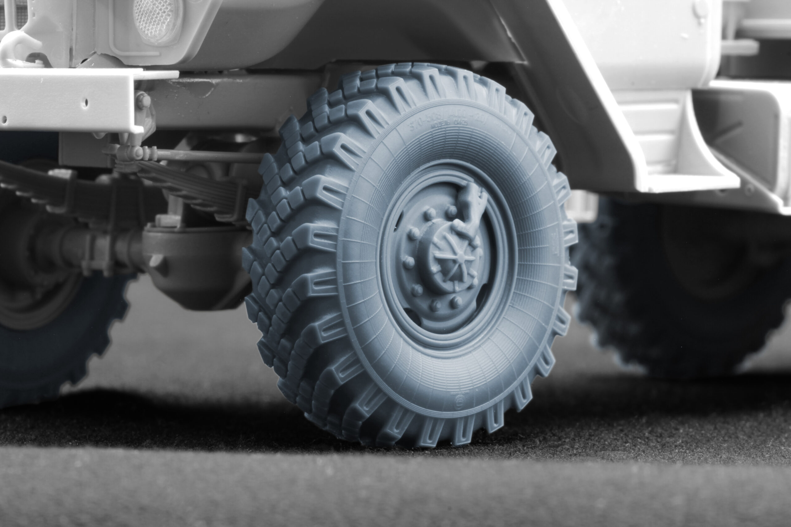 To help your model of the iconic URAL-4320 truck look as realistic as possible, we created a series of highly detailed 3D-printed wheels with OI-25 tires.