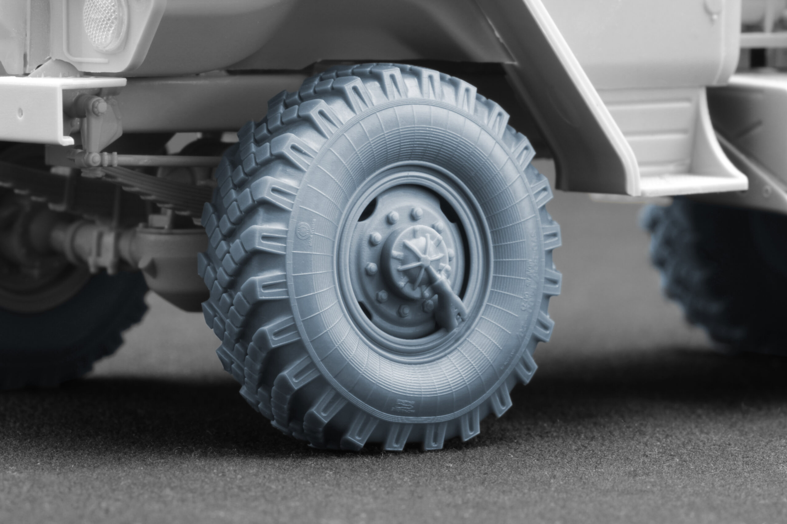 To help your model of the iconic URAL-4320 truck look as realistic as possible, we created a series of highly detailed 3D-printed wheels with OI-25 tires.